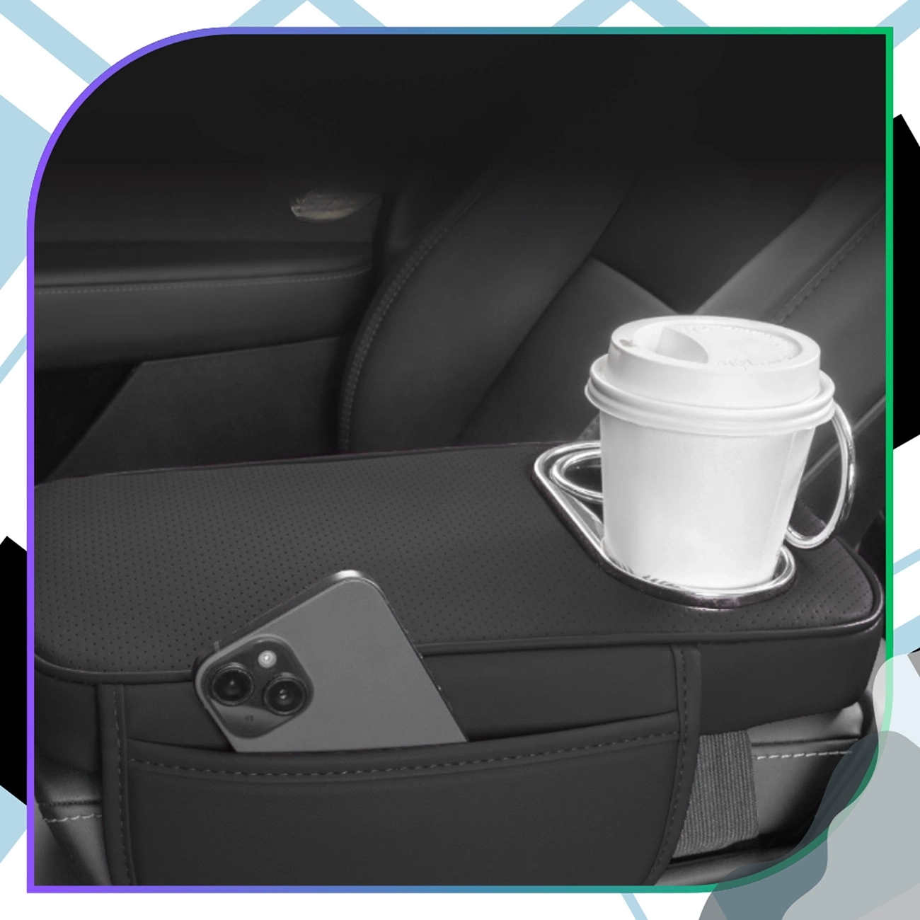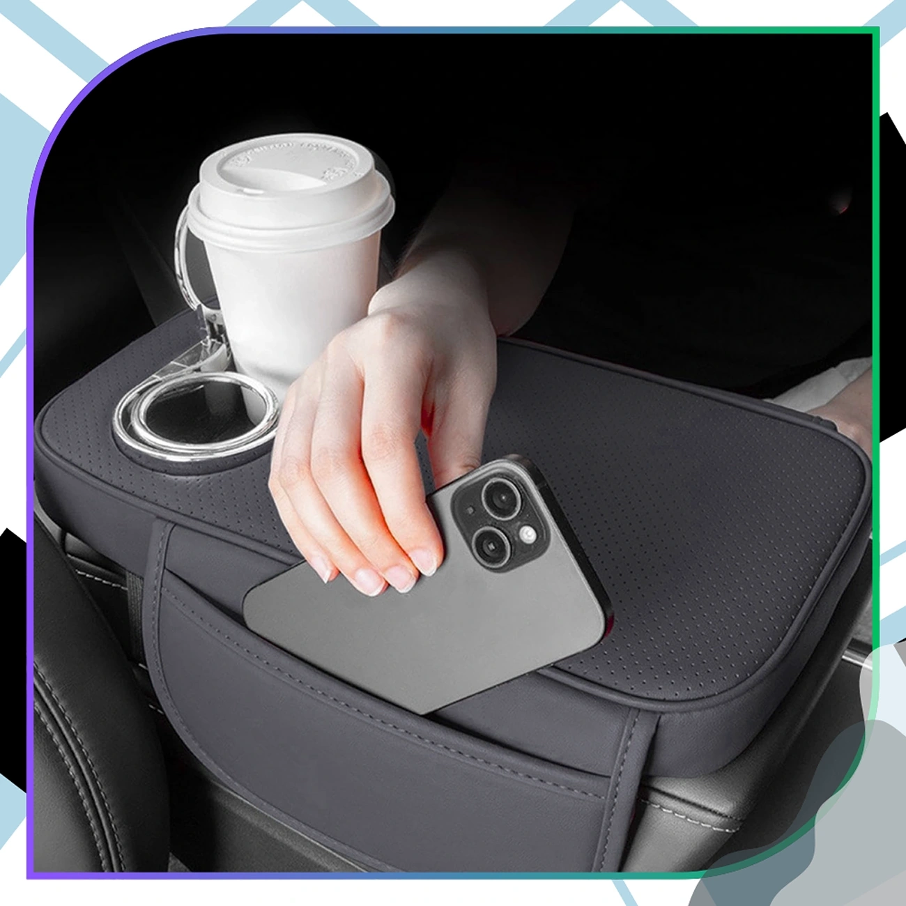 Datorită designului său ergonomic, ridică cotiera, îmbunătățind considerabil confortul de conducere – în special la călătoriile mai lungi. Husa este echipată cu două suporturi pentru pahare și un buzunar practic pentru telefon sau obiecte mici, care ajută la menținerea mașinii ordonate și la păstrarea celor mai importante lucruri la îndemână.