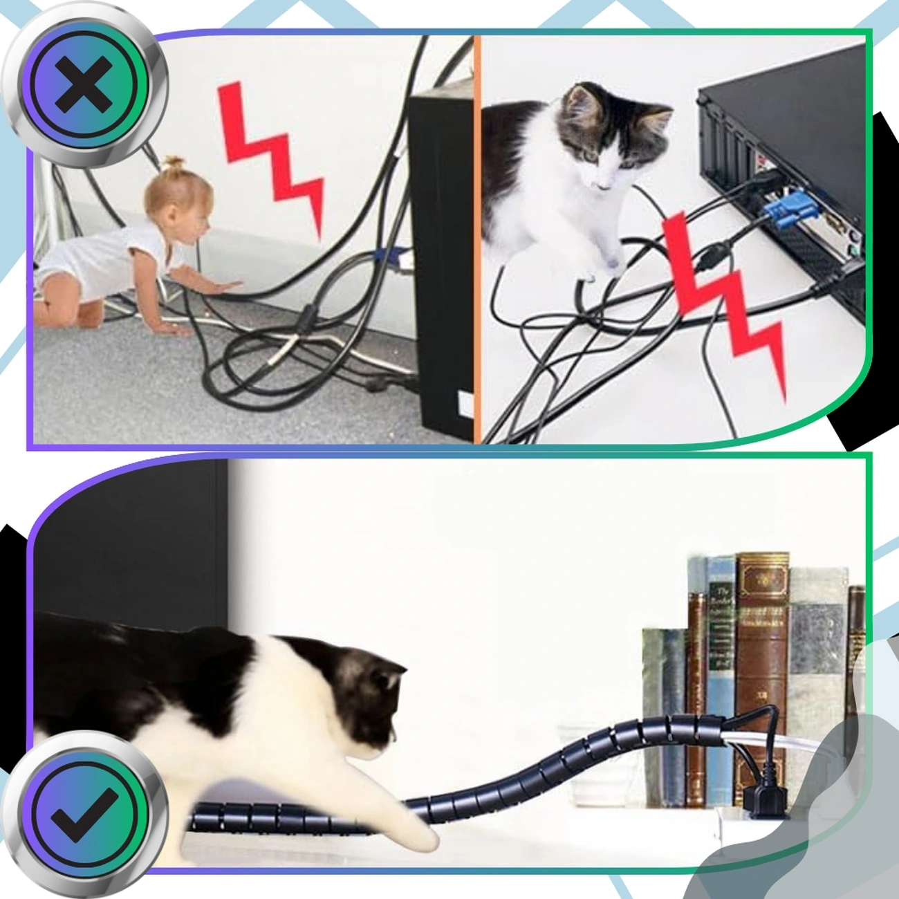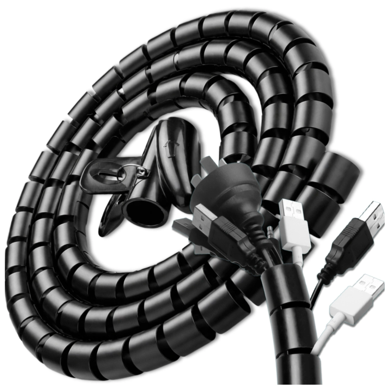 Husa spiralată pentru cabluri protejează eficient cablurile de abraziune, strivire, deteriorare accidentală și încurcare. Este perfectă pentru organizarea cablurilor de calculator, cablurilor de rețea, cablurilor de monitor, cablurilor TV, routerelor, imprimantelor și cablurilor de încărcător. Va face spațiul de la birou, de sub televizor sau din biroul de acasă curat și ordonat.