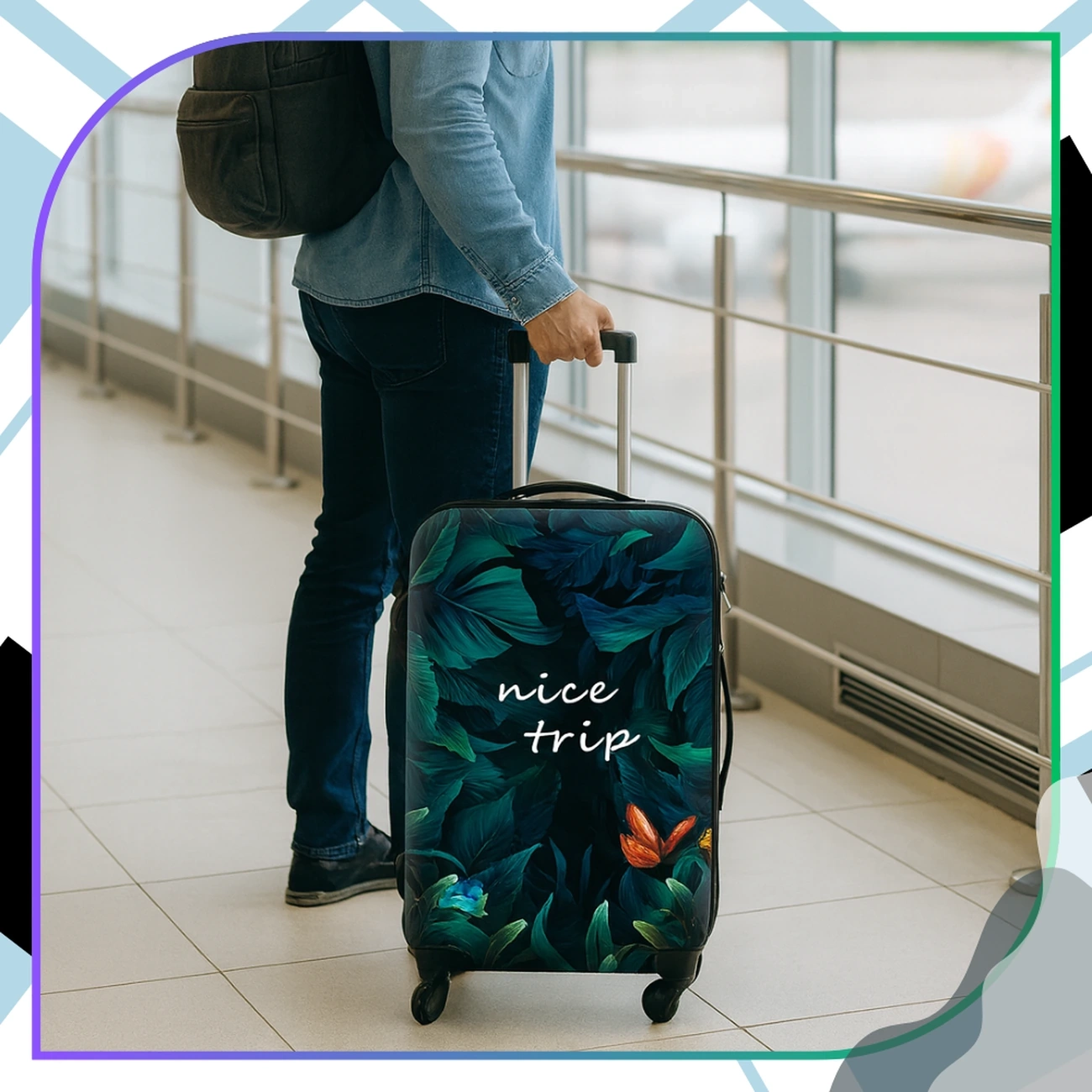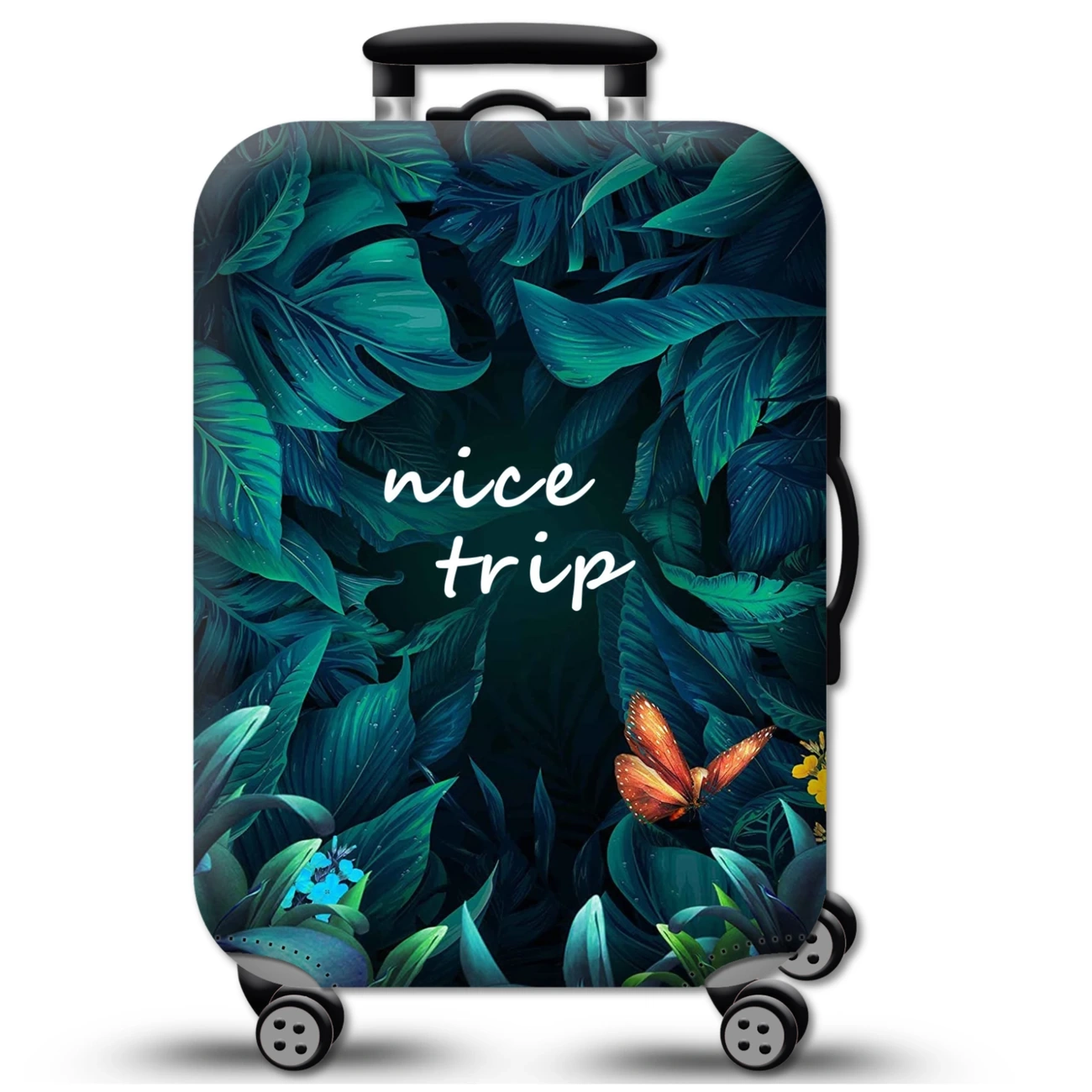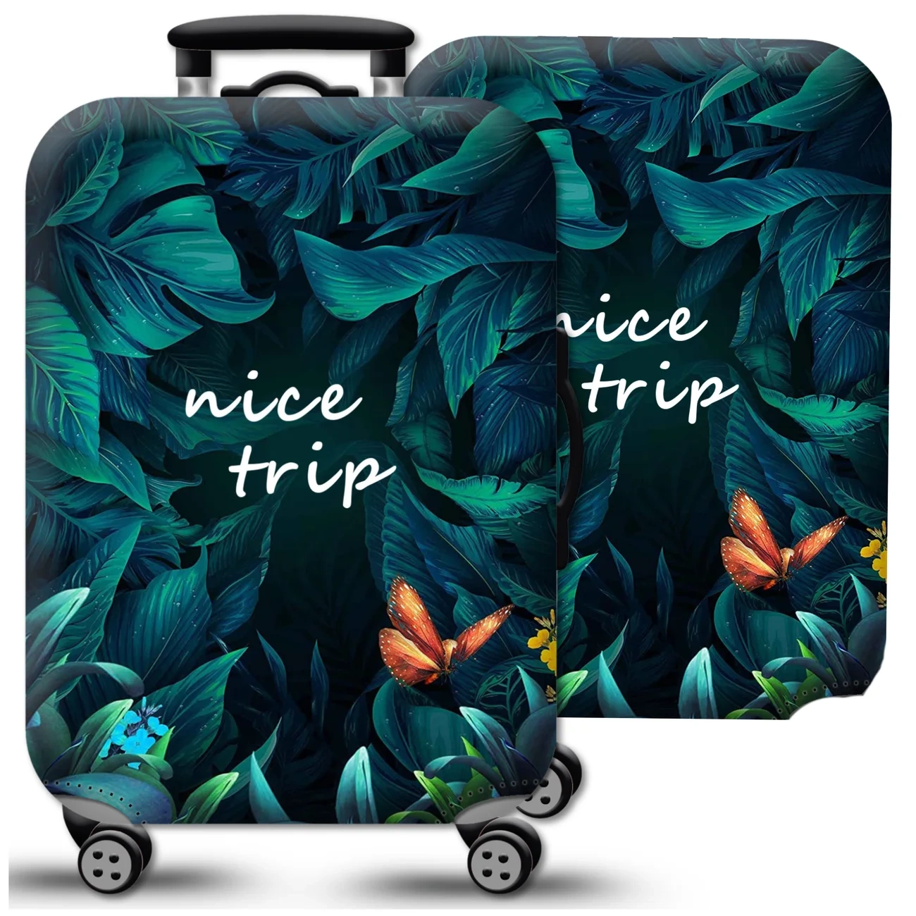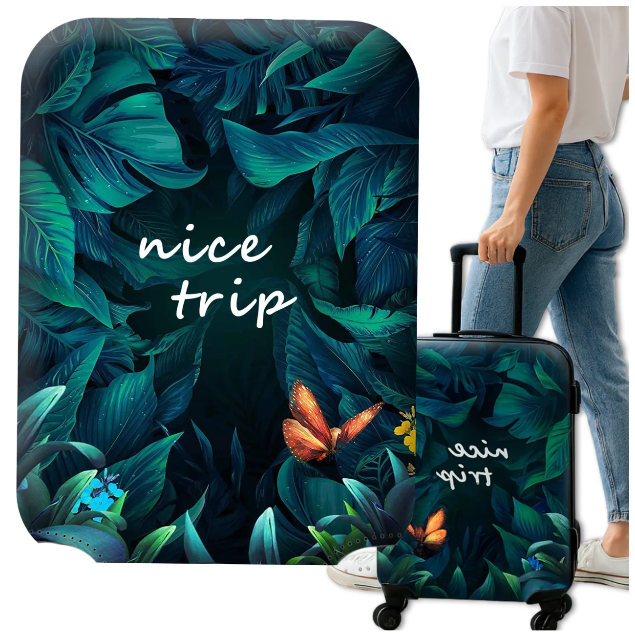 Dimensiunea de 26-28 inchi se potrivește valizelor cu înălțimea între 67 și 70 cm, făcând husa versatilă și practică. Materialul flexibil se adaptează bine formei bagajului dumneavoastră, asigurând stabilitate și utilizare confortabilă. Modelul tropical original cu inscripția „Nice Trip” și un motiv cu frunze și fluturi conferă acestei valize un caracter unic, deosebindu-l de altele.