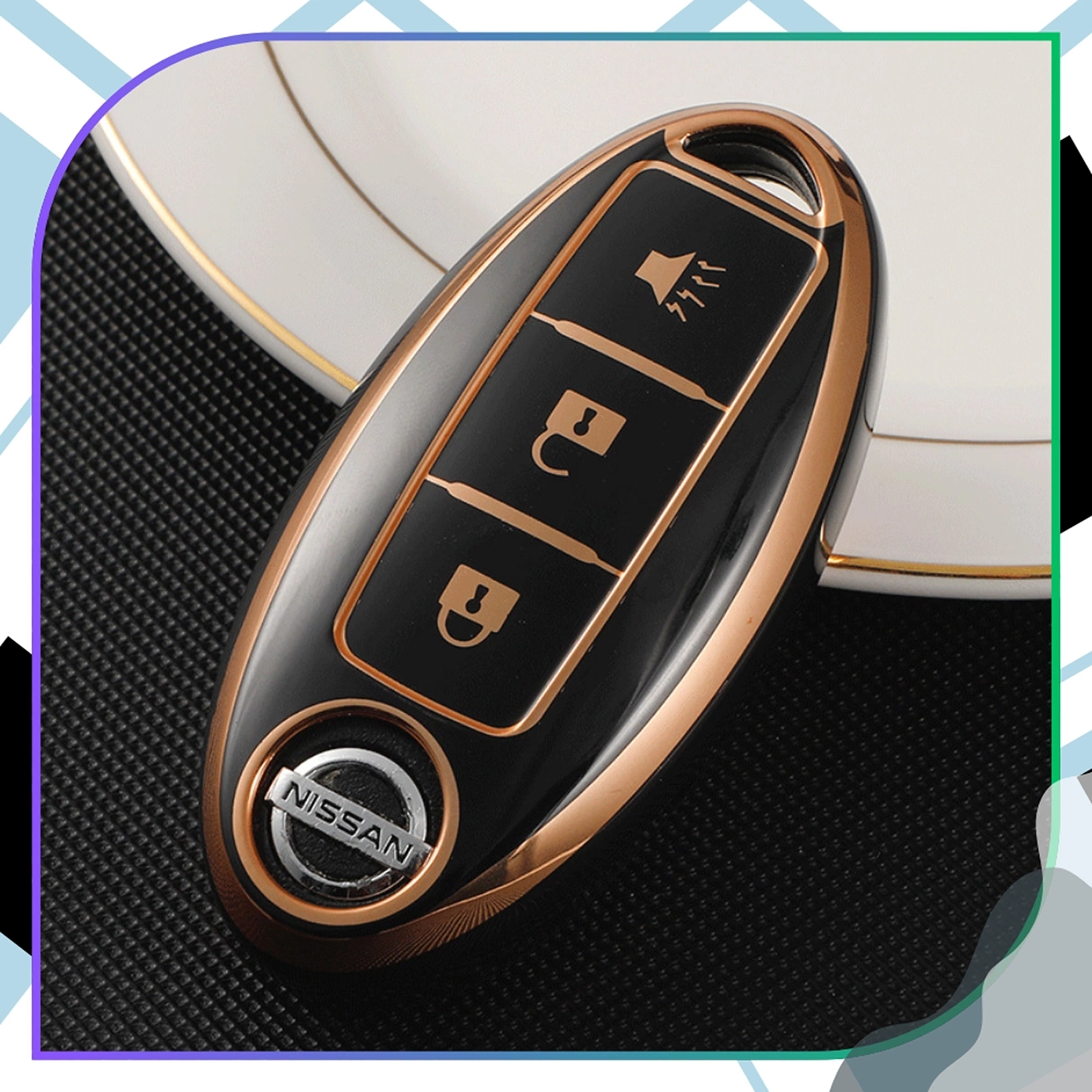 Designul modern, negru și auriu, conferă cheii un caracter elegant și luxos. Cadrul auriu combinat cu accentele negre lucioase subliniază aspectul său prestigios, completând perfect interiorul mașinilor moderne. Nu este doar o protecție practică, ci și un plus estetic care vă va scoate cheia în evidență.