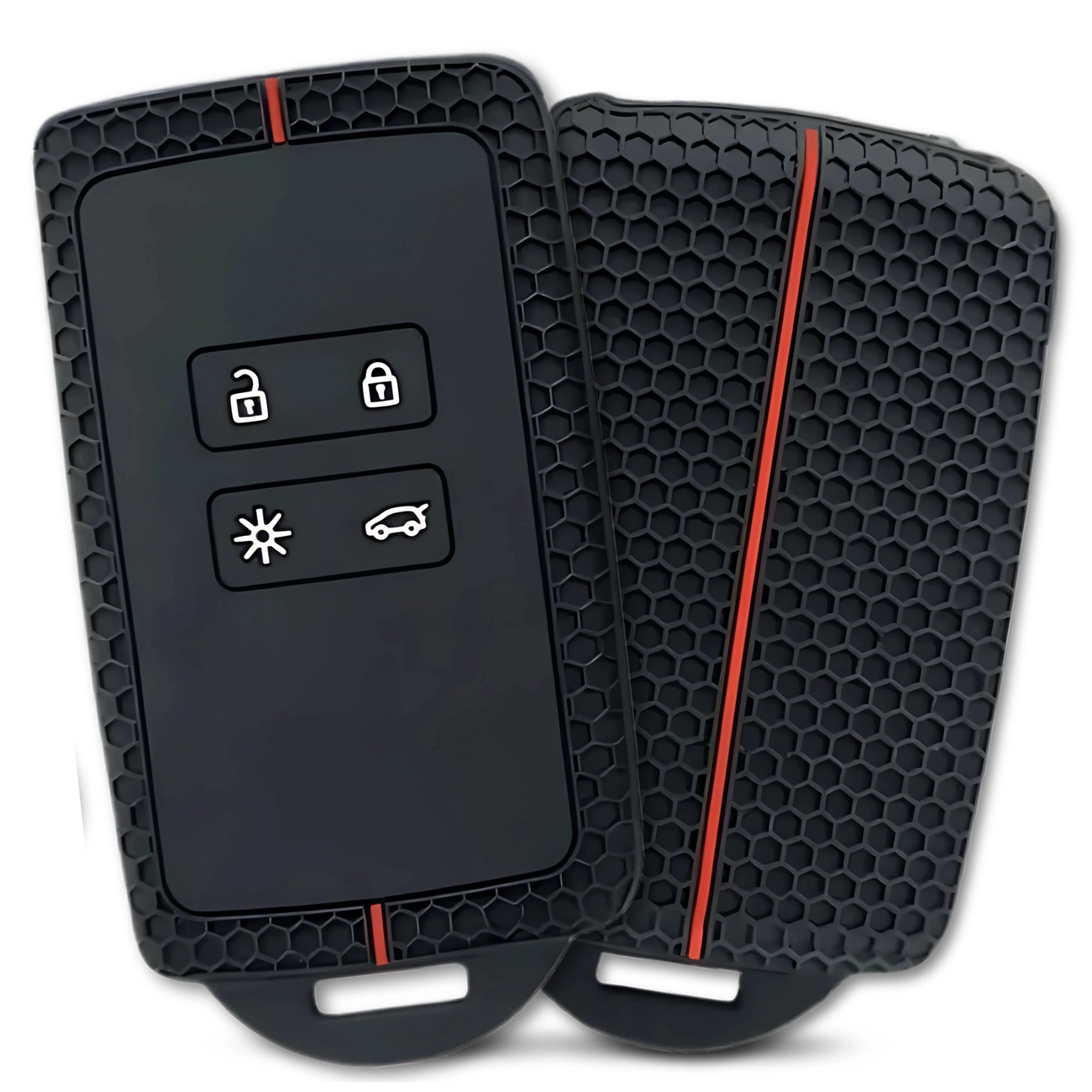 Designul negru și roșu îi conferă un caracter modern și sportiv. Suprafața texturată de tip fagure îmbunătățește aderența și previne alunecarea cheii din mână, în timp ce detaliile roșii adaugă o notă dinamică. Nu este doar protecție, ci și un plus atractiv care va spori eleganța mașinii tale.