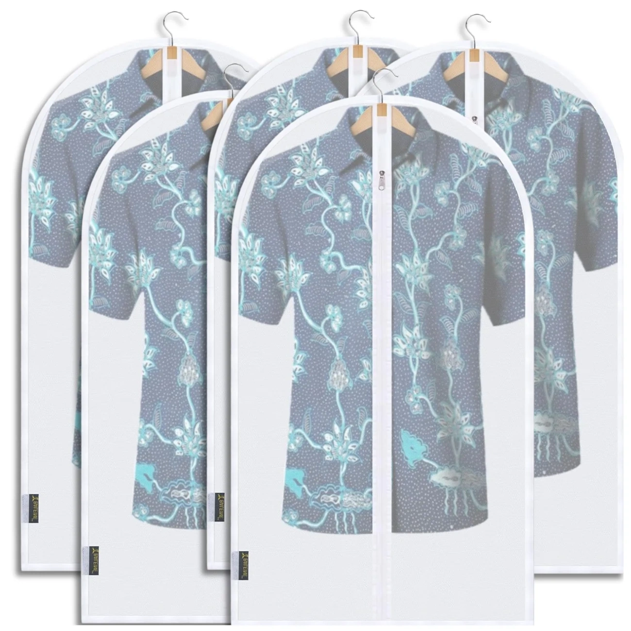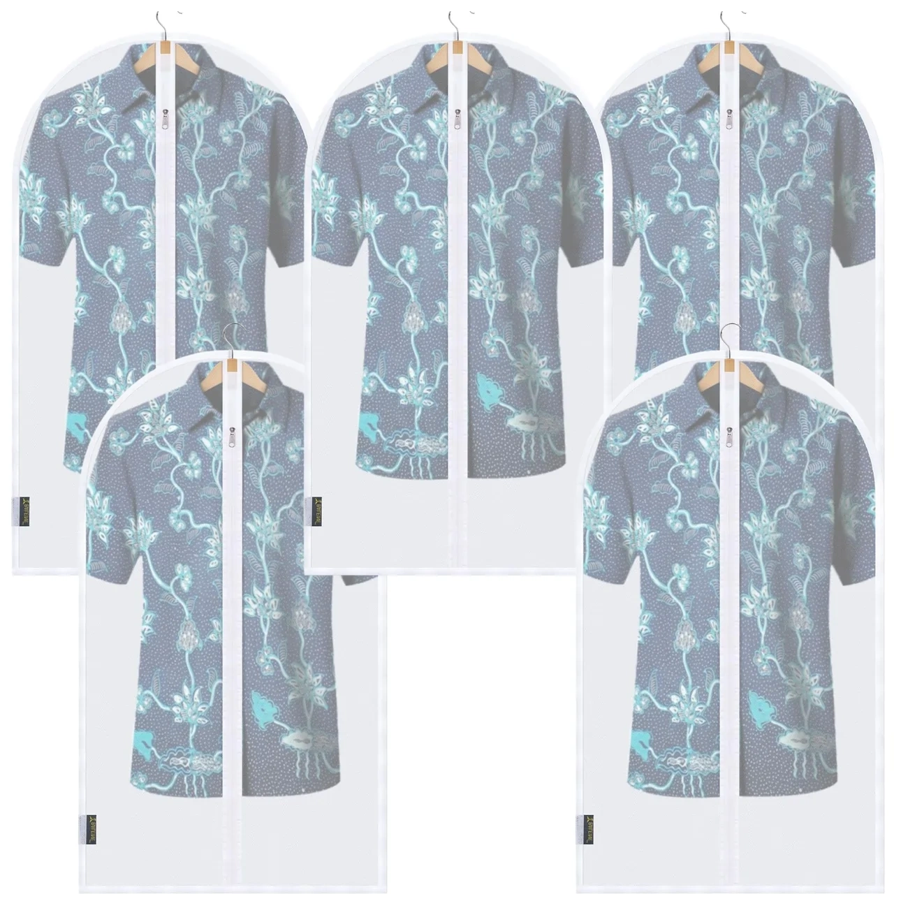 Păstrează-ți garderoba organizată și protejează-ți hainele preferate cu acest set de cinci huse de protecție practice. Această soluție funcțională va funcționa bine atât acasă, cât și în vestiare, buticuri și hoteluri. Produsul este complet nou și fabricat dintr-un material durabil și ușor, care protejează eficient hainele de factorii externi. Designul transparent oferă o vedere perfectă asupra conținutului, eliminând necesitatea de a deschide sau căuta în dulap.