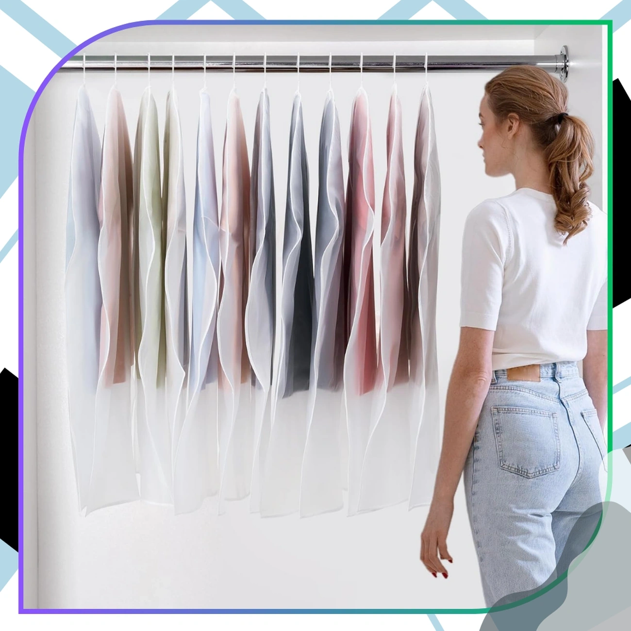 Funcționalitate: protejează hainele împotriva prafului, umezelii, murdăriei și cutelor; permite identificarea rapidă a conținutului