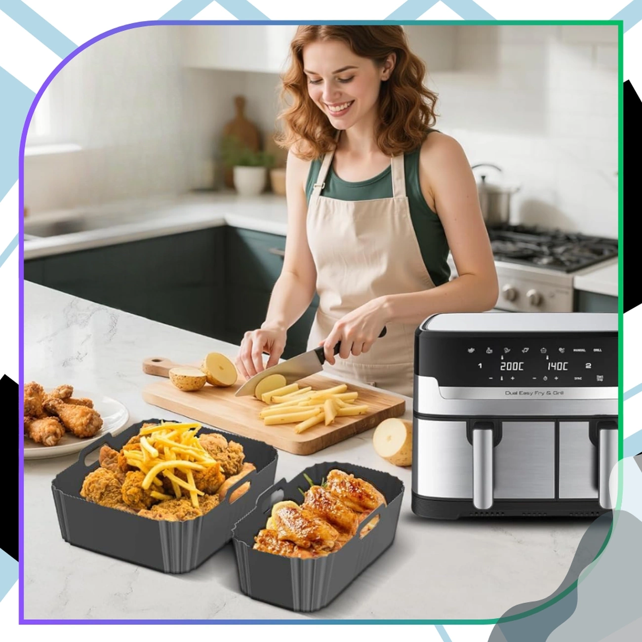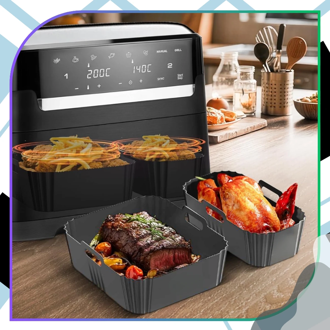 Alegeți confortul și curățenia în bucătărie - alegeți setul de inserții din silicon pentru friteuza cu aer și bucurați-vă de preparate gustoase și crocante, fără mizerie!