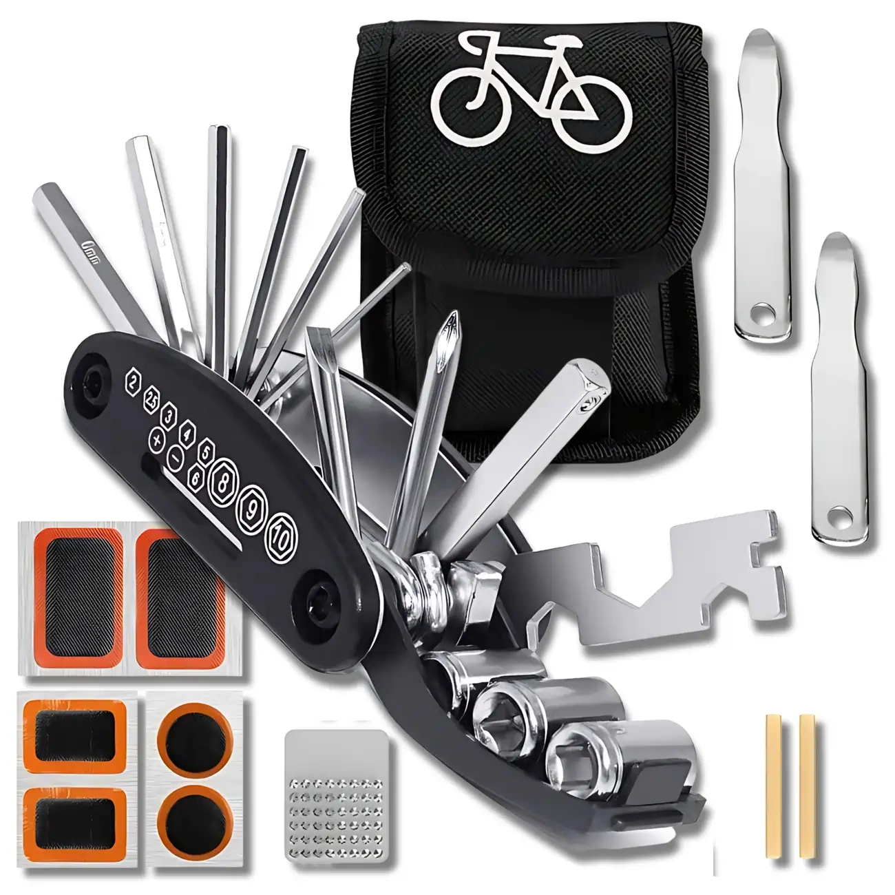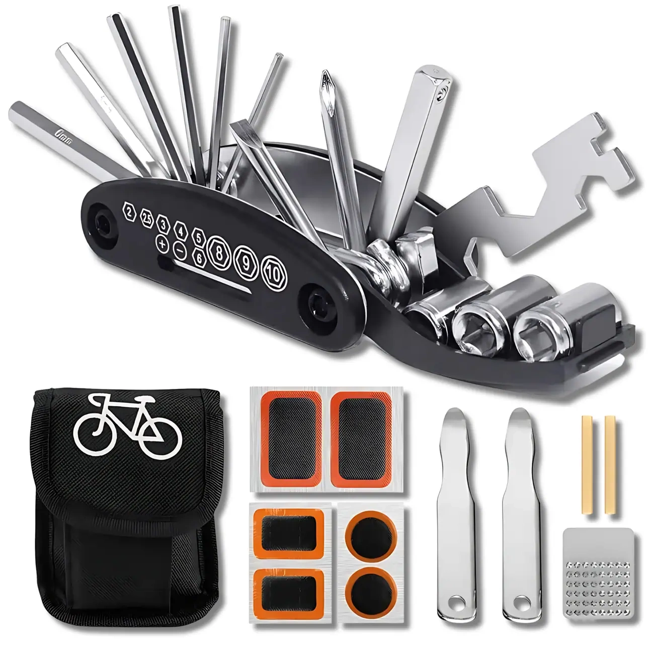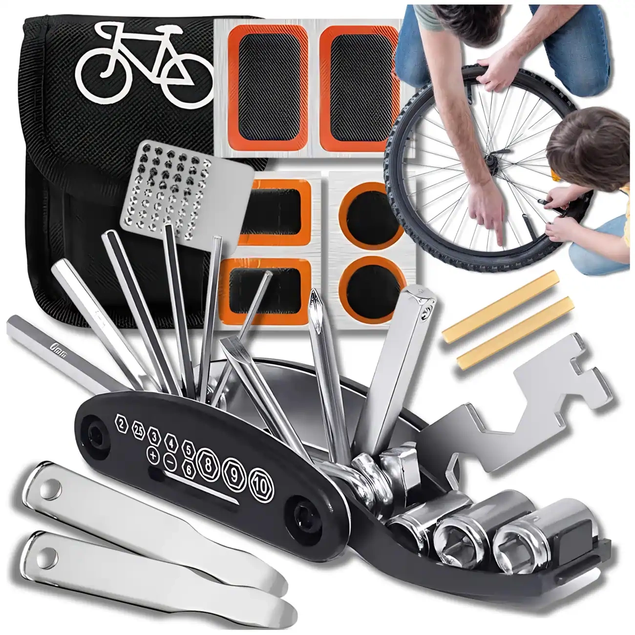 Setul include o cheie multifuncțională pentru bicicletă (multiuneltă) care conține, printre altele: chei hexagonale (de la 2 la 10 mm), șurubelnițe, chei de spițe și chei plate. Fabricat din oțel inoxidabil durabil, asigură fiabilitatea în orice situație. Este o soluție compactă și practică, ideală pentru reparații rapide pe șosea.
