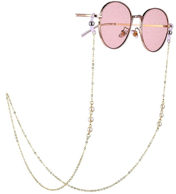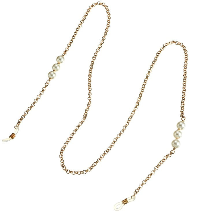 Lanțul decorativ cu perle pentru ochelari pe care îl oferim are capete din cauciuc cu clipsuri. Este un produs cu o lungime de 73 cm. Acest produs este disponibil în culoarea aur galben lucios, foarte la modă în acest sezon. Lanțul ornamental cu perle pentru ochelari, recomandat de magazinul nostru online , se potrivește majorității ochelarilor de soare și ochelarilor corectivi purtați.