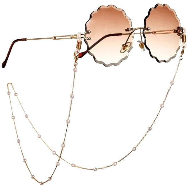 Lanțul elegant cu perle pe care îl recomandăm are capete din cauciuc cu cleme. Acest produs are o lungime de 75 cm. Este un accesoriu original și, în același timp, cu un aspect impresionant. Are o valoare utilă ridicată, deoarece datorită lui nu există riscul de a pierde ochelarii corectivi sau ochelarii de soare purtați. Lanțul de perle recomandat poate fi o idee excelentă de cadou pentru femeile de toate vârstele.