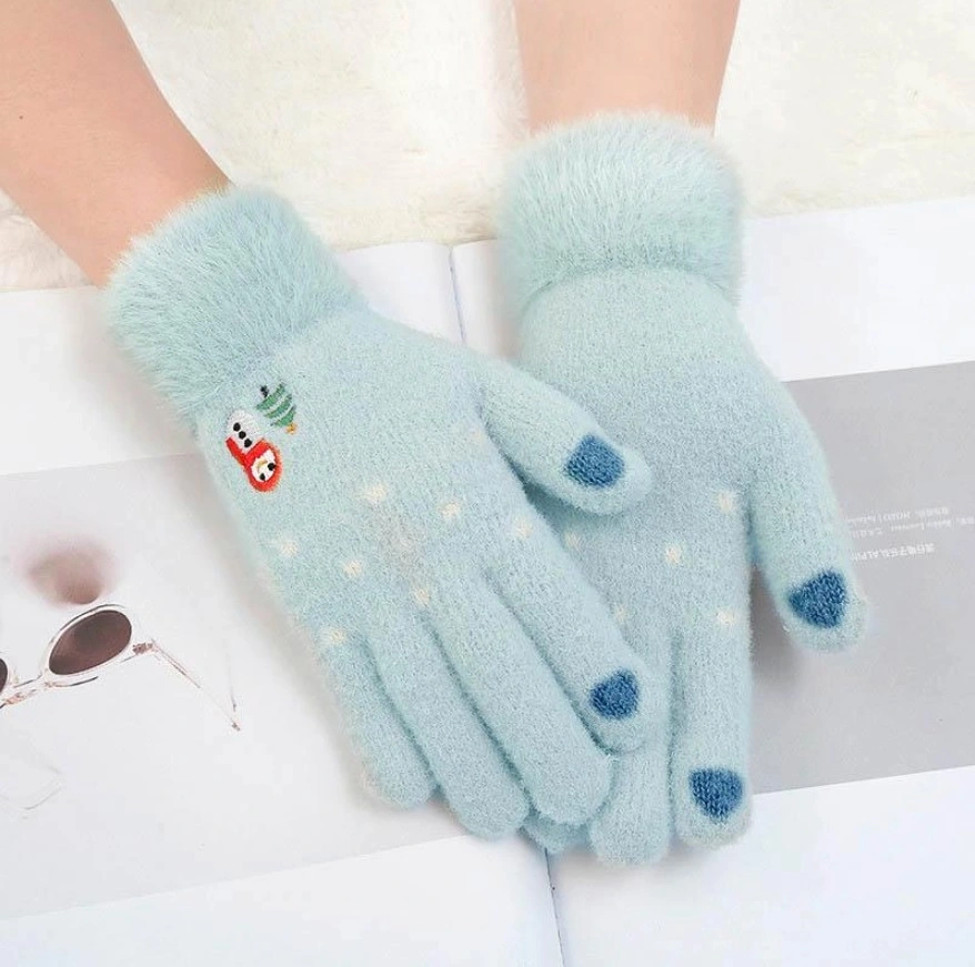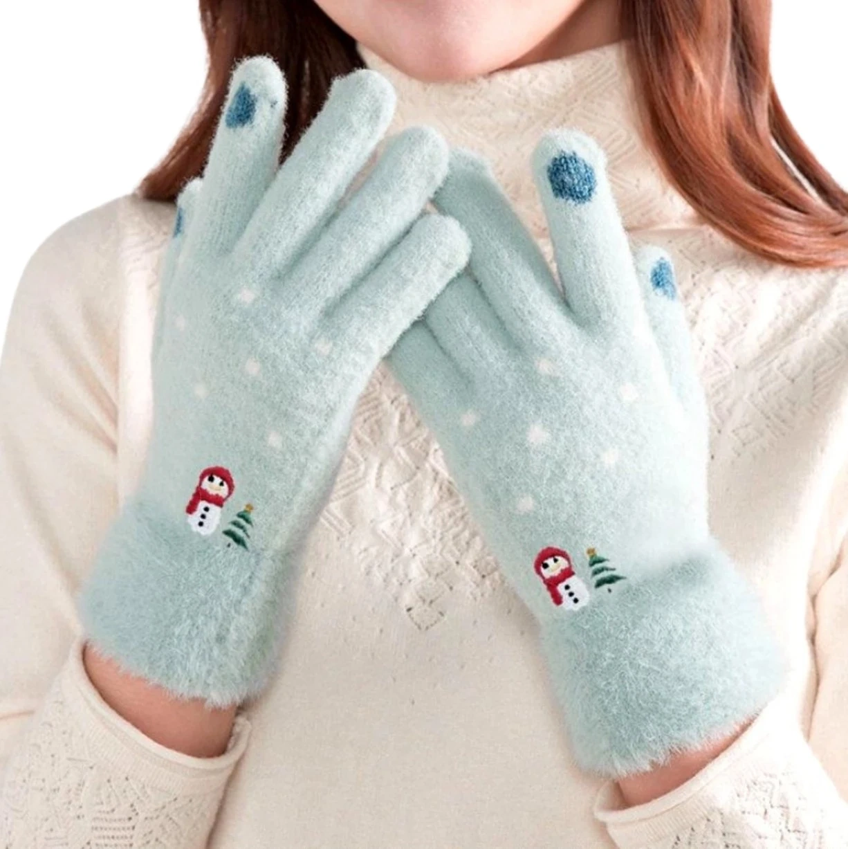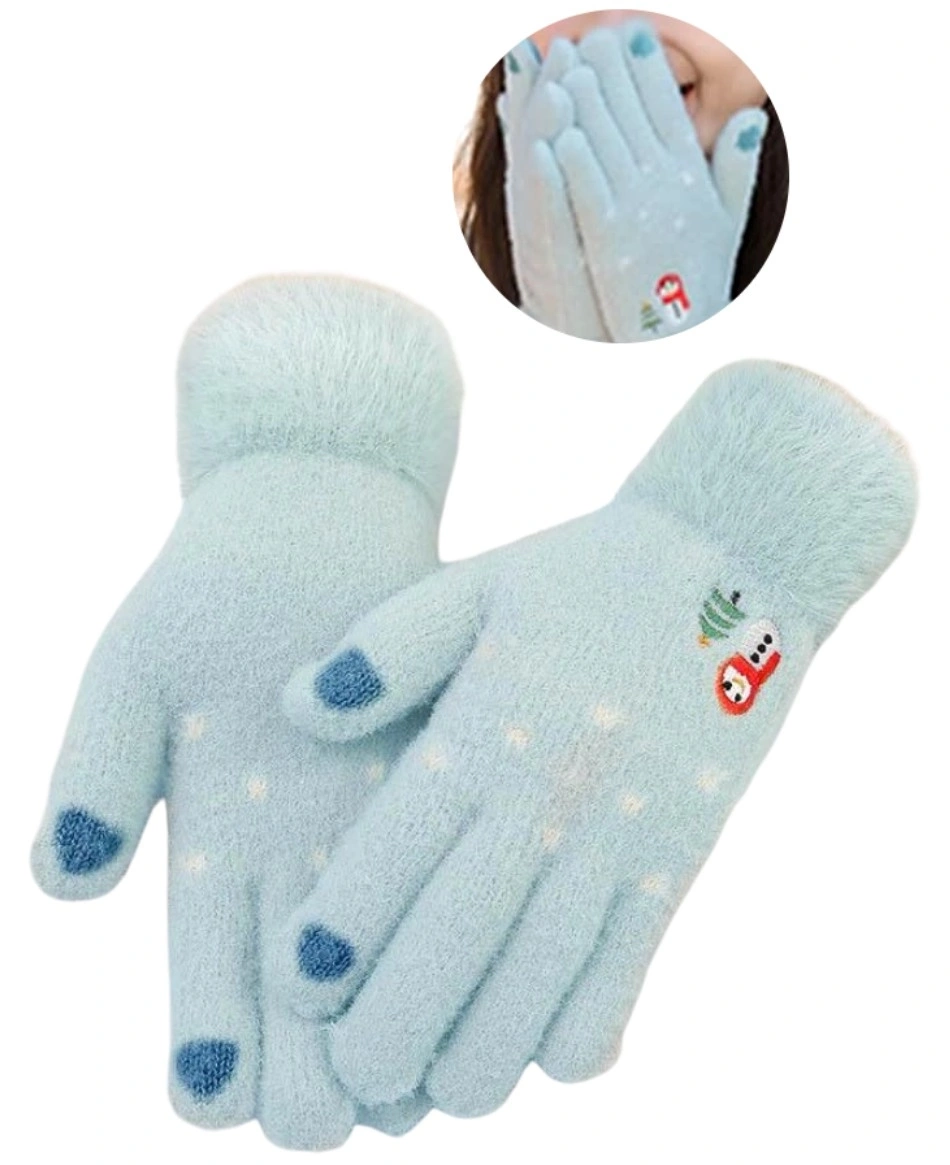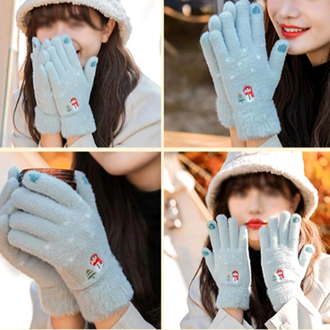 Mănuși calde de iarnă pentru femei, brodate cu model de Crăciun