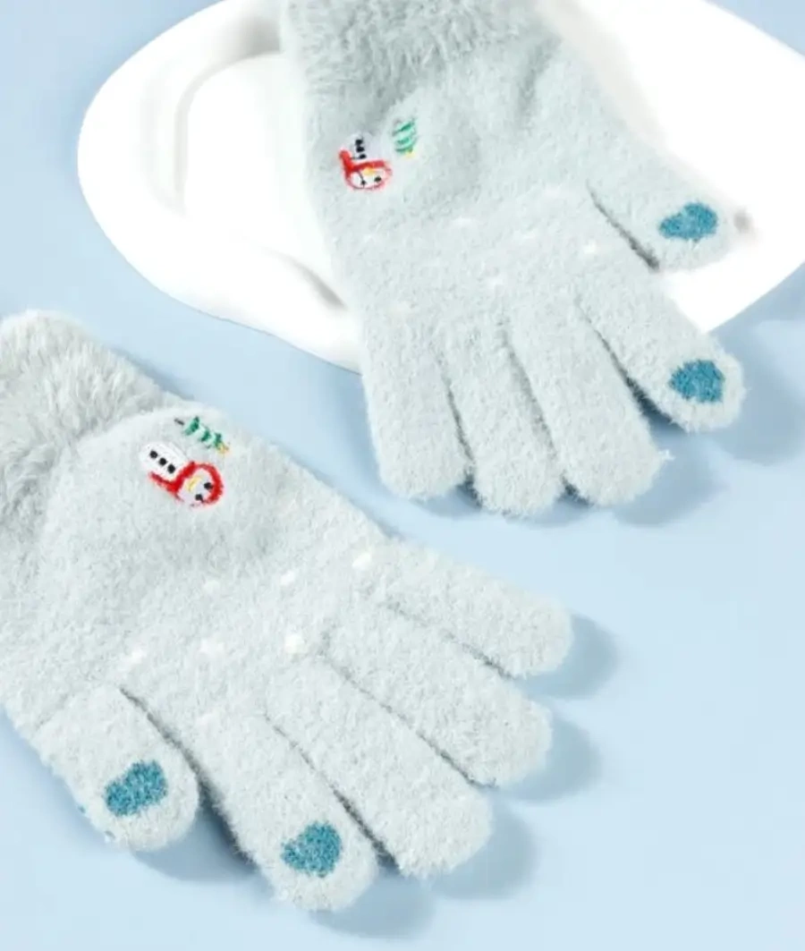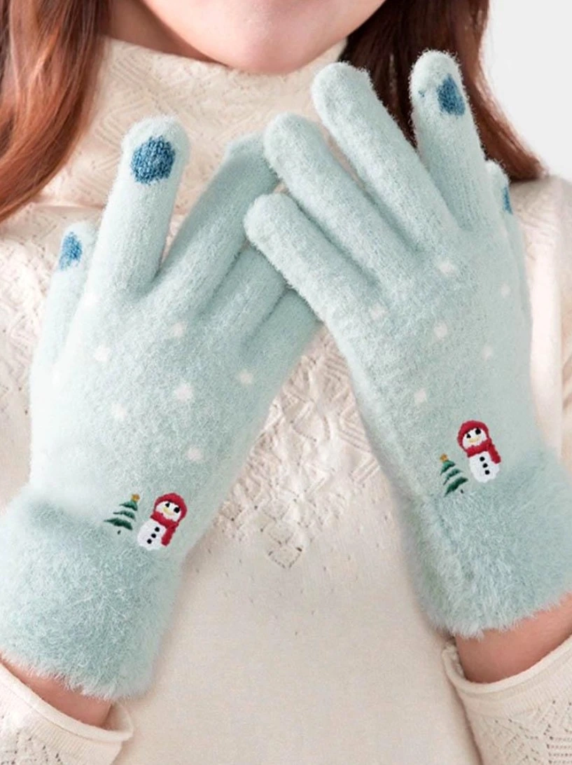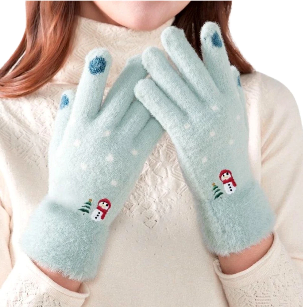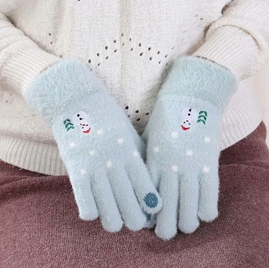 Mănuși calde de iarnă pentru femei, brodate cu model de Crăciun