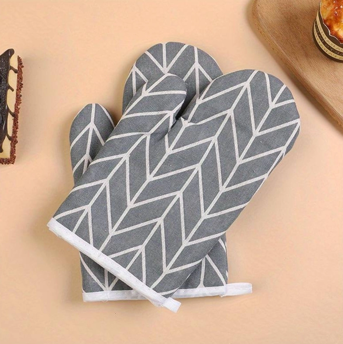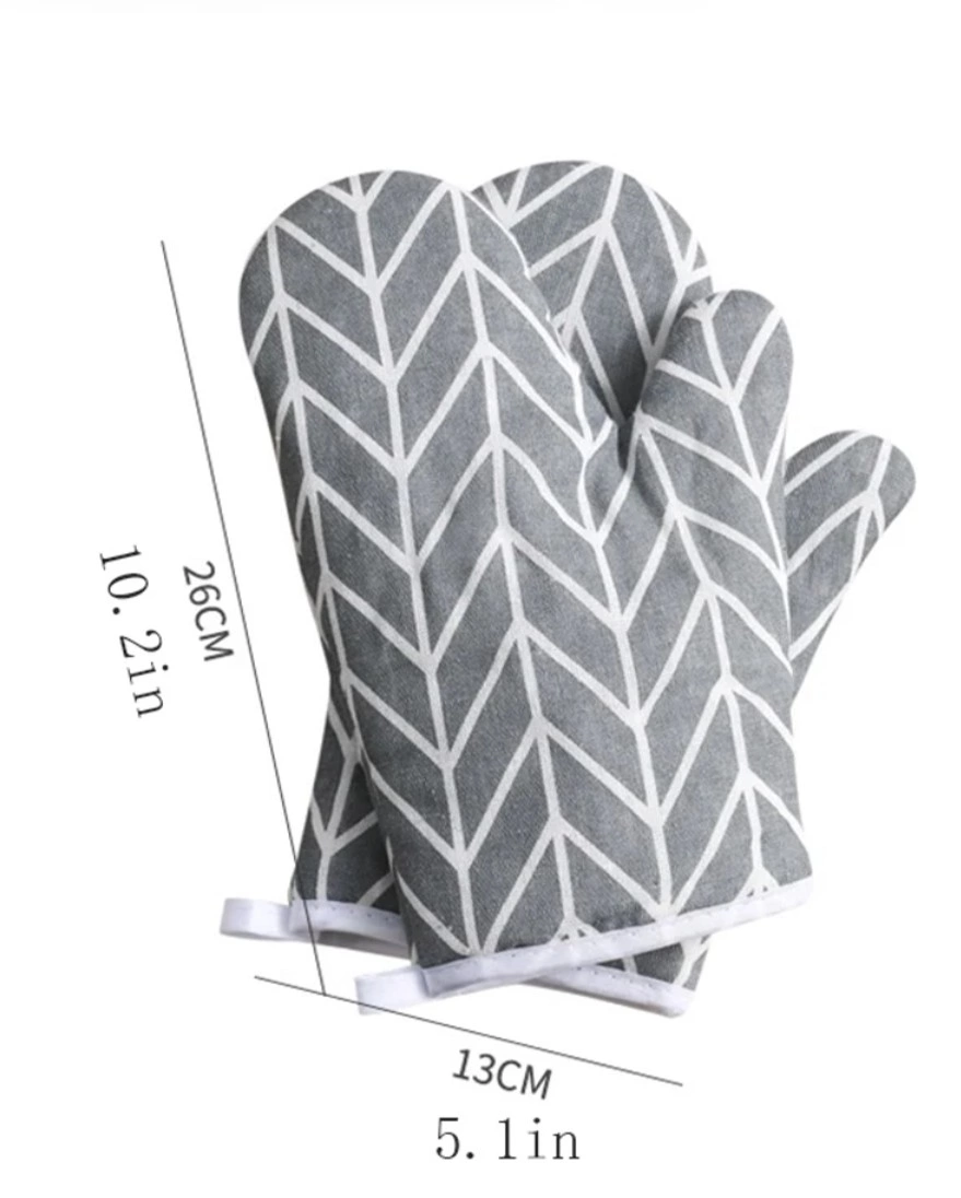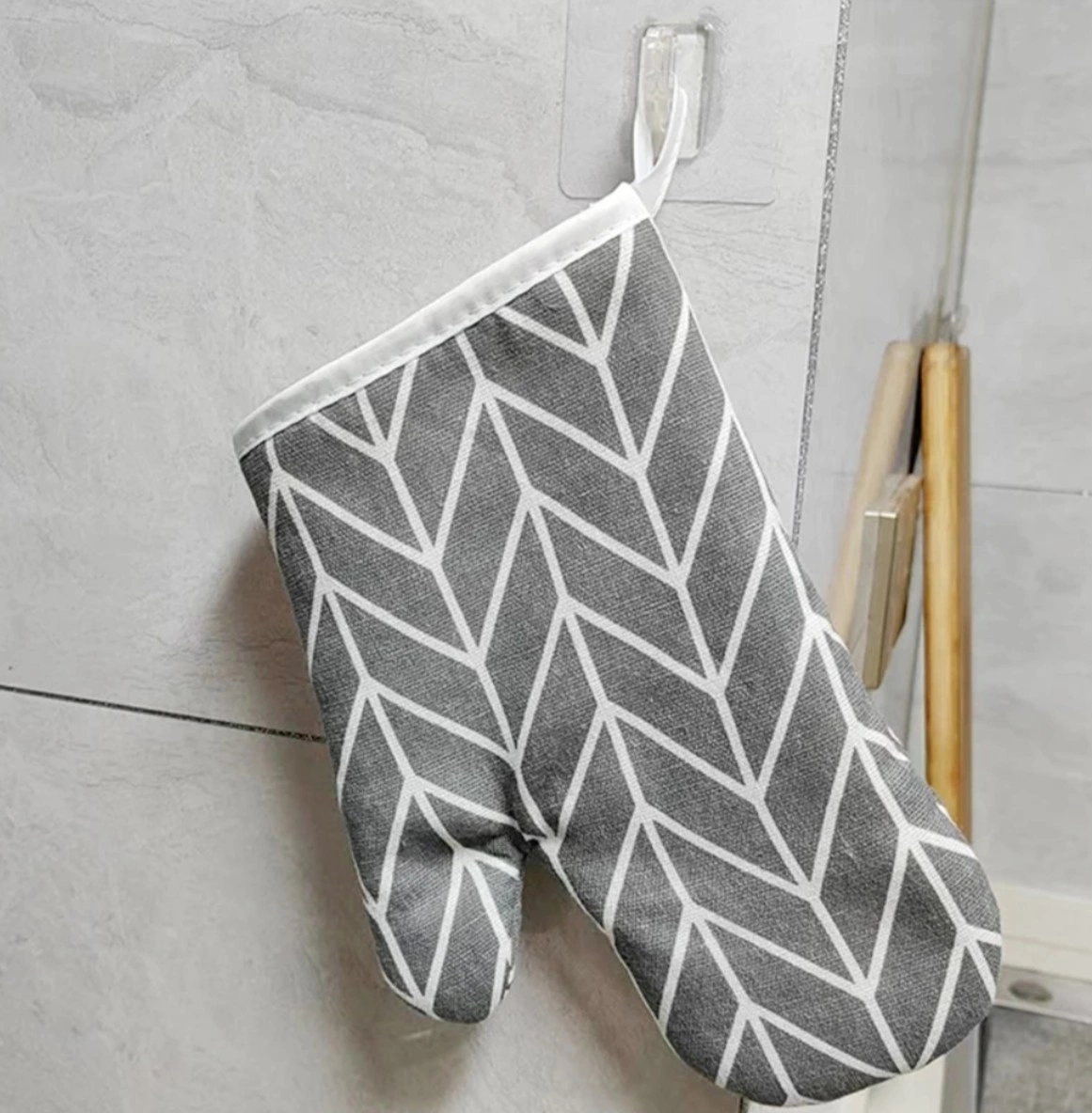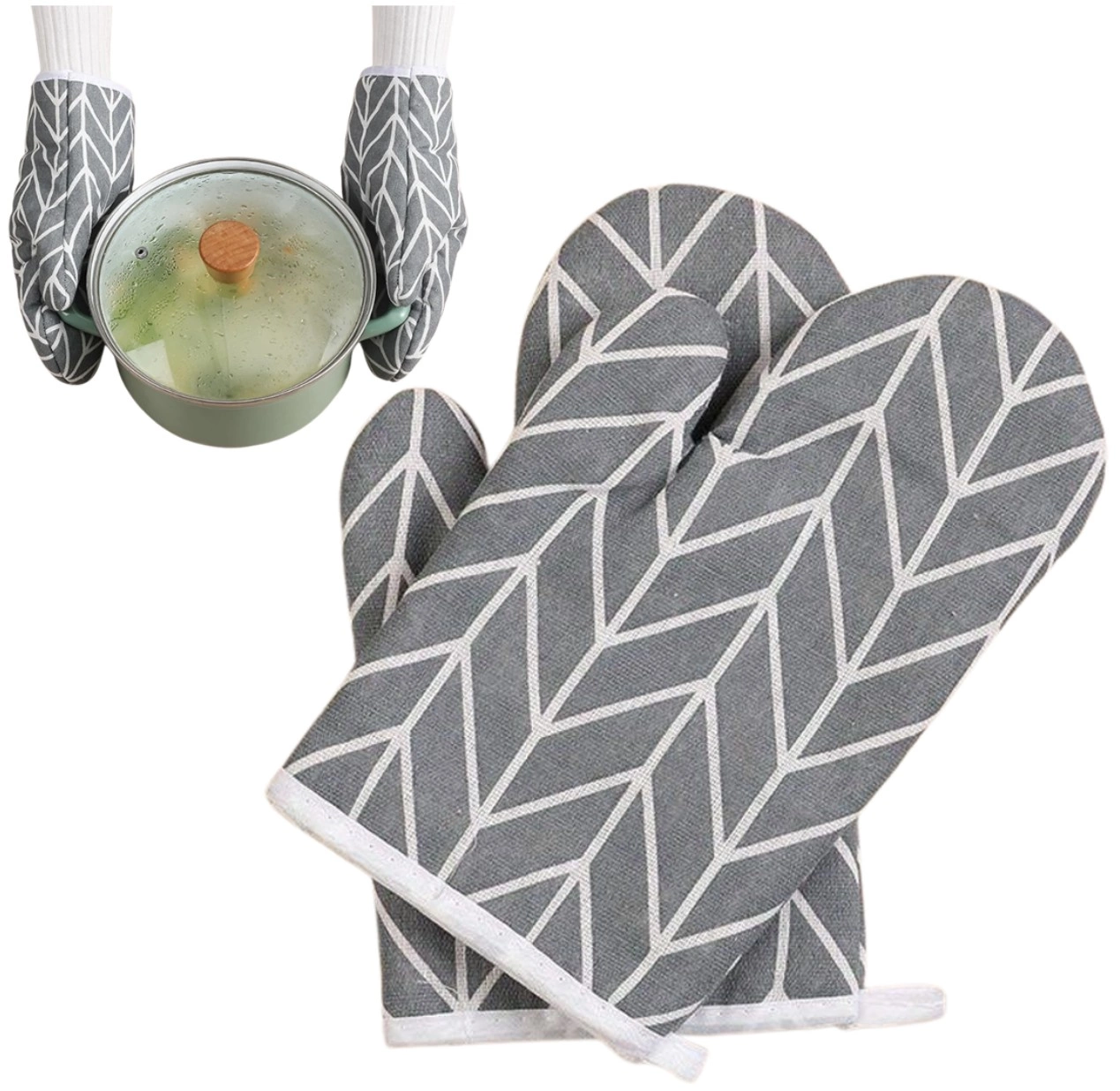 Mănușile sunt fabricate din bumbac de cea mai bună calitate, ceea ce le face nu numai extrem de durabile, dar și confortabile la purtare. Culoarea lor gri elegantă și modelul elegant în formă de heringbone le fac să se potrivească perfect cu orice bucătărie, adăugând o notă de farmec modern. În plus, aceste mănuși sunt ușor de curățat - se pot spăla la mașină pentru o utilizare de lungă durată și un aspect proaspăt, fără a fi nevoie de spălare manuală sau îngrijire specializată.