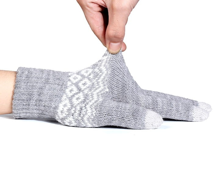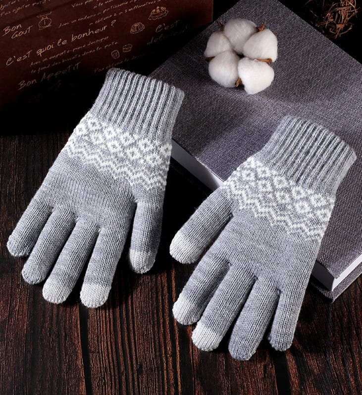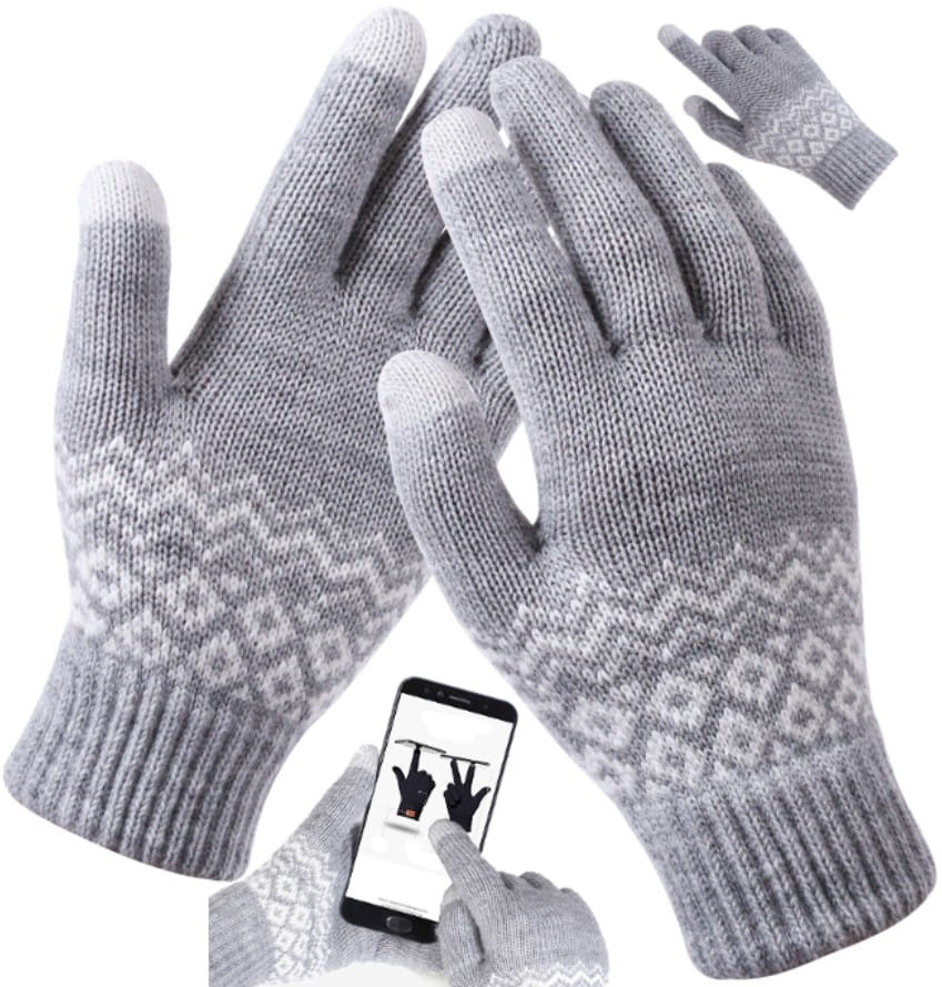 Mănușile de damă gri , călduroase, cu model nordic tactil, de iarnă sunt un must have în acest sezon.