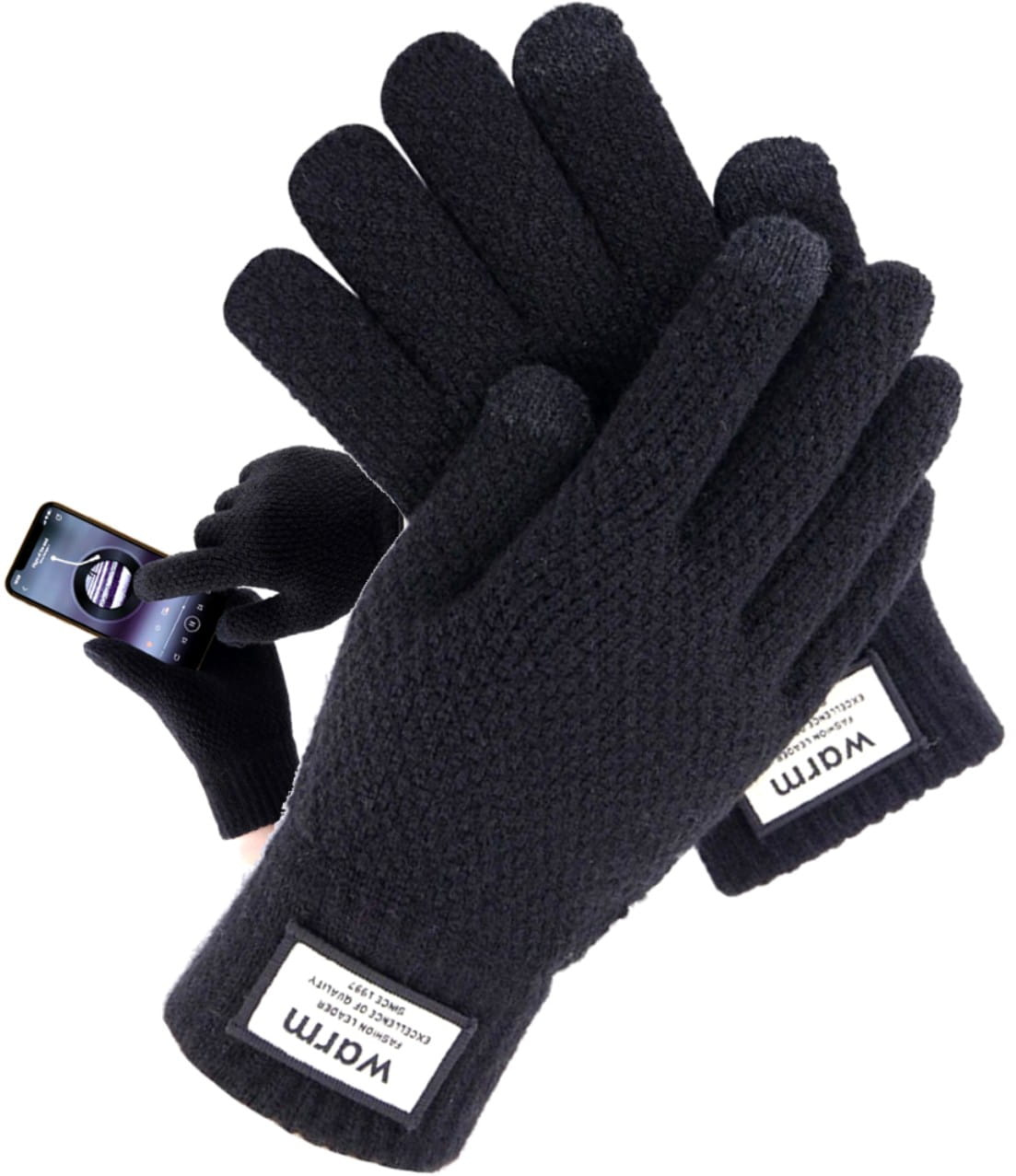 Mănușile calde de iarnă negre pentru bărbați au un strat special pe degetul mare și arătător, care face posibilă operarea ecranelor tactile de pe telefoane sau tablete. Acest produs este finisat cu meticulozitate, astfel încât materialul tricotat nu devine mușchiulos în timpul utilizării zilnice.