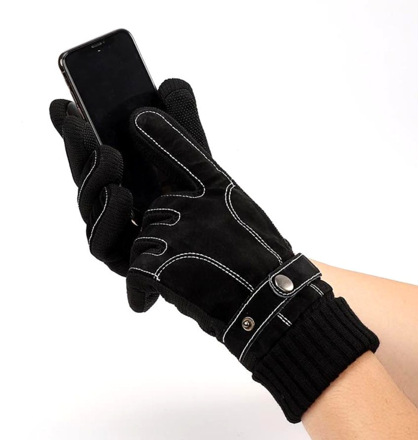Mănușile sunt sensibile la atingere - au un strat special pe degetul arătător, care face posibilă operarea ecranelor tactile de pe telefoane sau tablete