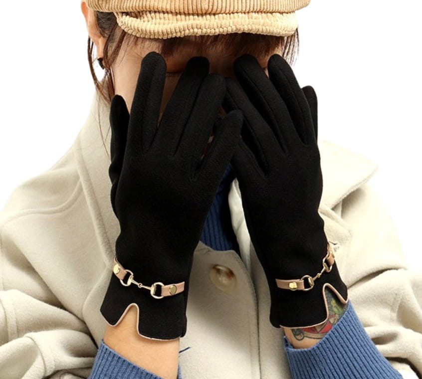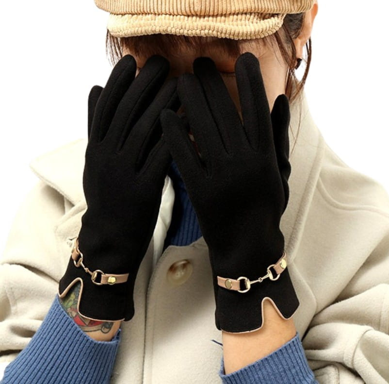 Mănuși pentru femei calde, material moale, foarte confortabile, cu cataramă la modă.