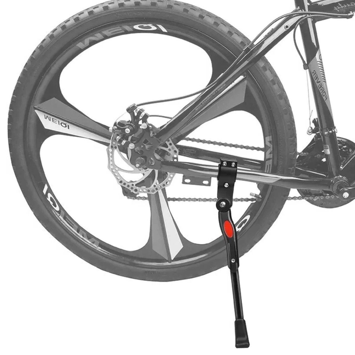Piciorul de bicicletă este fabricat din aliaj de aluminiu, ceea ce îl face nu numai ușor, dar și rezistent la apă și coroziune. Datorită tălpii sale antiderapante din plastic, aceasta oferă siguranță suplimentară, împiedicând alunecarea bicicletei atunci când este staționată. Lungimea sa reglabilă, de la 23 la 28 cm, permite o potrivire precisă la orice bicicletă, garantând stabilitate și utilizare confortabilă. Montarea piciorului este rapidă și ușoară, fiind ușor de montat fără a fi nevoie de unelte profesionale.