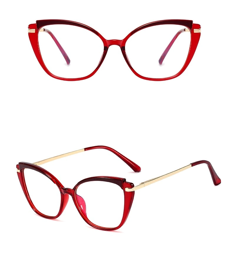 Acești ochelari zero lumină nu au dioptrii, dar sunt echipați cu un filtru UV400 pentru a reduce radiațiile UVA, UVB și UVC. Ramele roșii stil cat-eye ale acestor ochelari antireflex cu vedere zero adaugă o notă unică. Ei vor fi potriviți pentru ținute casual și formale