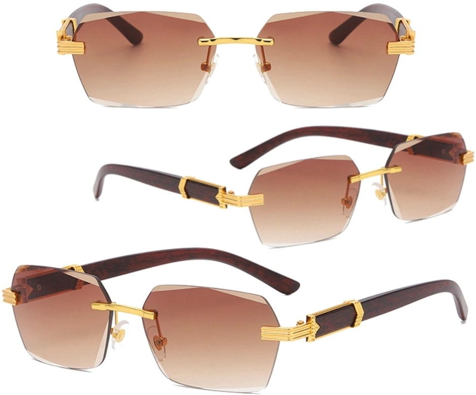 Ochelarii de soare dreptunghiulari fără ramă maro unici și originali sunt un produs unisex care poate fi purtat, atât de bărbați, cât și de femei. Acest produs se distinge prin manopera sa atentă și utilizarea unui filtru UV400 3-cat, care reduce complet radiațiile UVA și UVB.