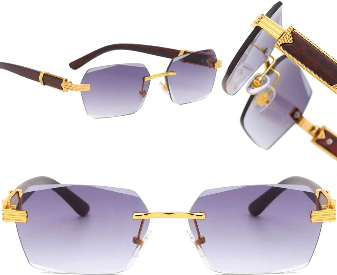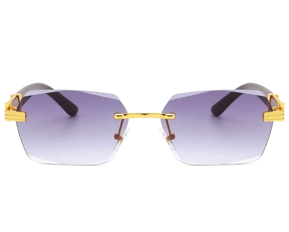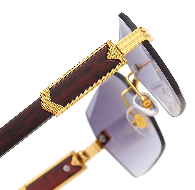 Elementele metalice de pe tâmple și balamale contribuie la eleganța acestui produs. Acestea au fost acoperite cu lac auriu, făcând ca acești ochelari de soare dreptunghiulari fără rame să arate deosebit de atractivi.