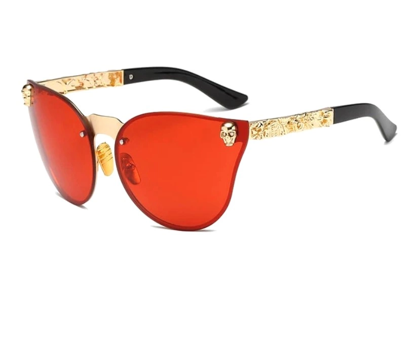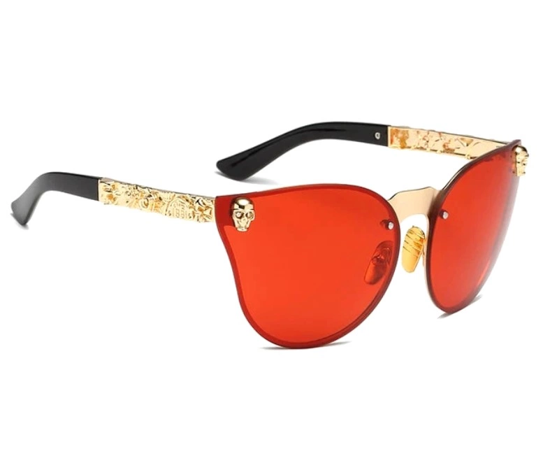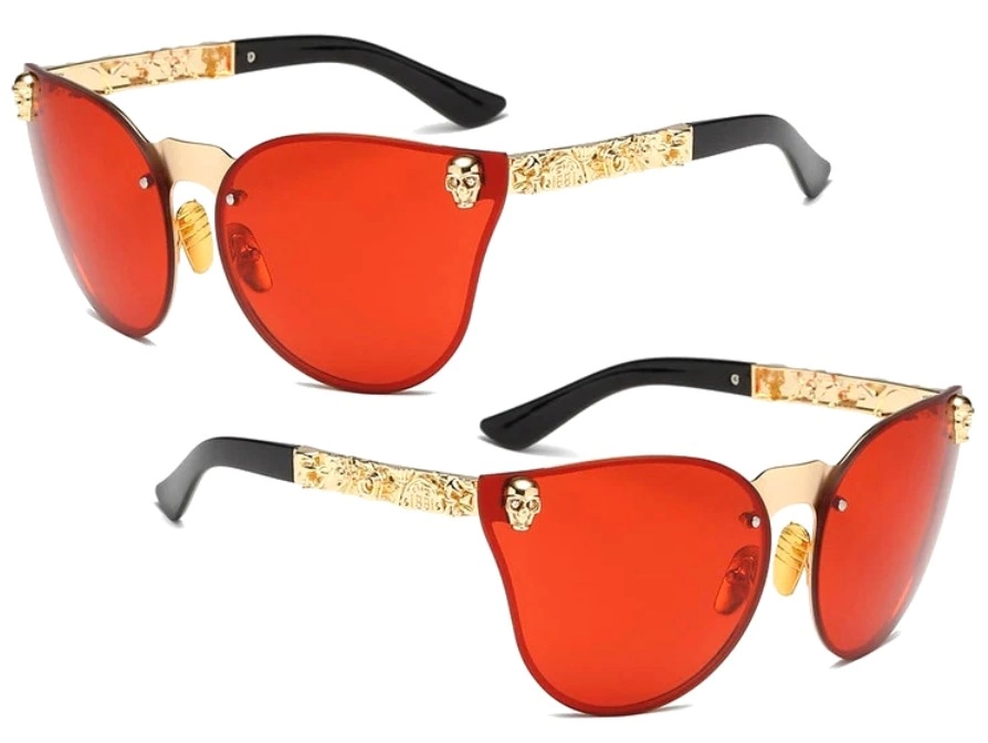 Ochelari de soare roșii cu ochi de pisică, cu craniu