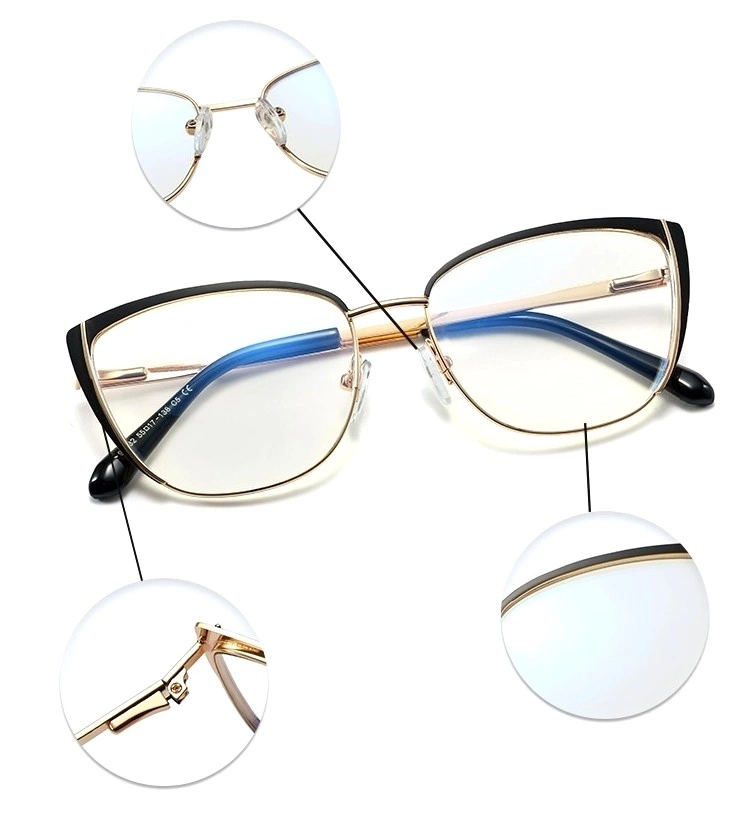 Ochelarii de vederecu cat-eye aurii antireflex asigură în primul rând siguranță pentru ochi, precum și un aspect extrem de la modă pentru persoana care îi poartă. Acești ochelari sunt ideali pentru a fi purtați la serviciu, la universitate sau în timpul activităților zilnice la calculator. Pentru un efect optim, aceștia trebuie să fie așezați pe nas și ajustați la forma feței.
