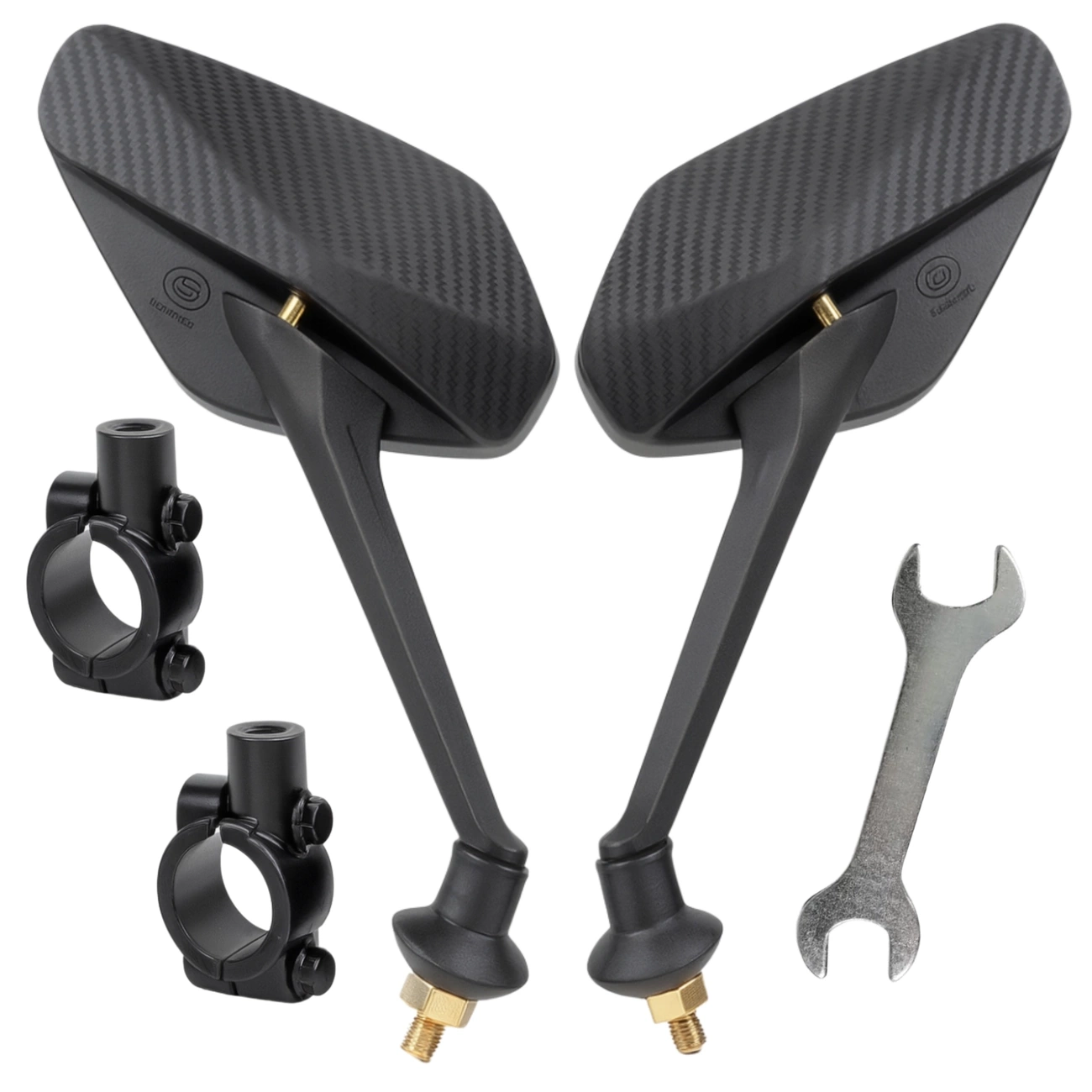 Accesoriile pentru scuter precum aceste oglinzi laterale nu sunt doar o cerință de siguranță, ci și un element care afectează semnificativ confortul și încrederea în conducere. Setul include două oglinzi laterale, permițând un echipament complet al motocicletei. Acest lucru este deosebit de important pentru călătoriile de zi cu zi în oraș, unde o bună vizibilitate și monitorizarea împrejurimilor sunt primordiale.