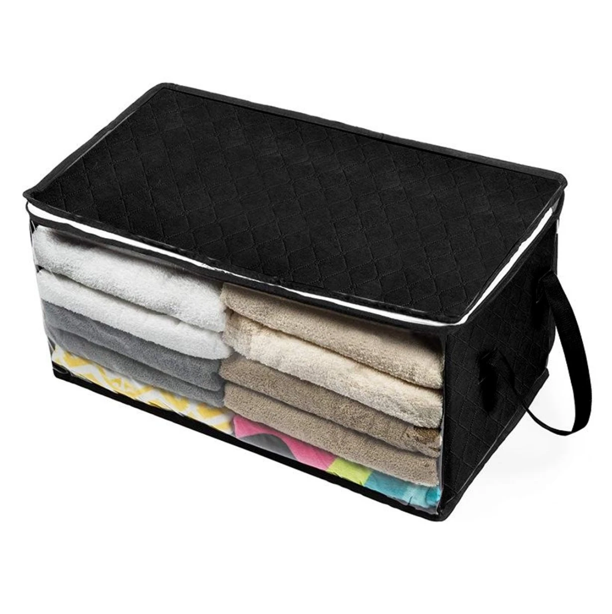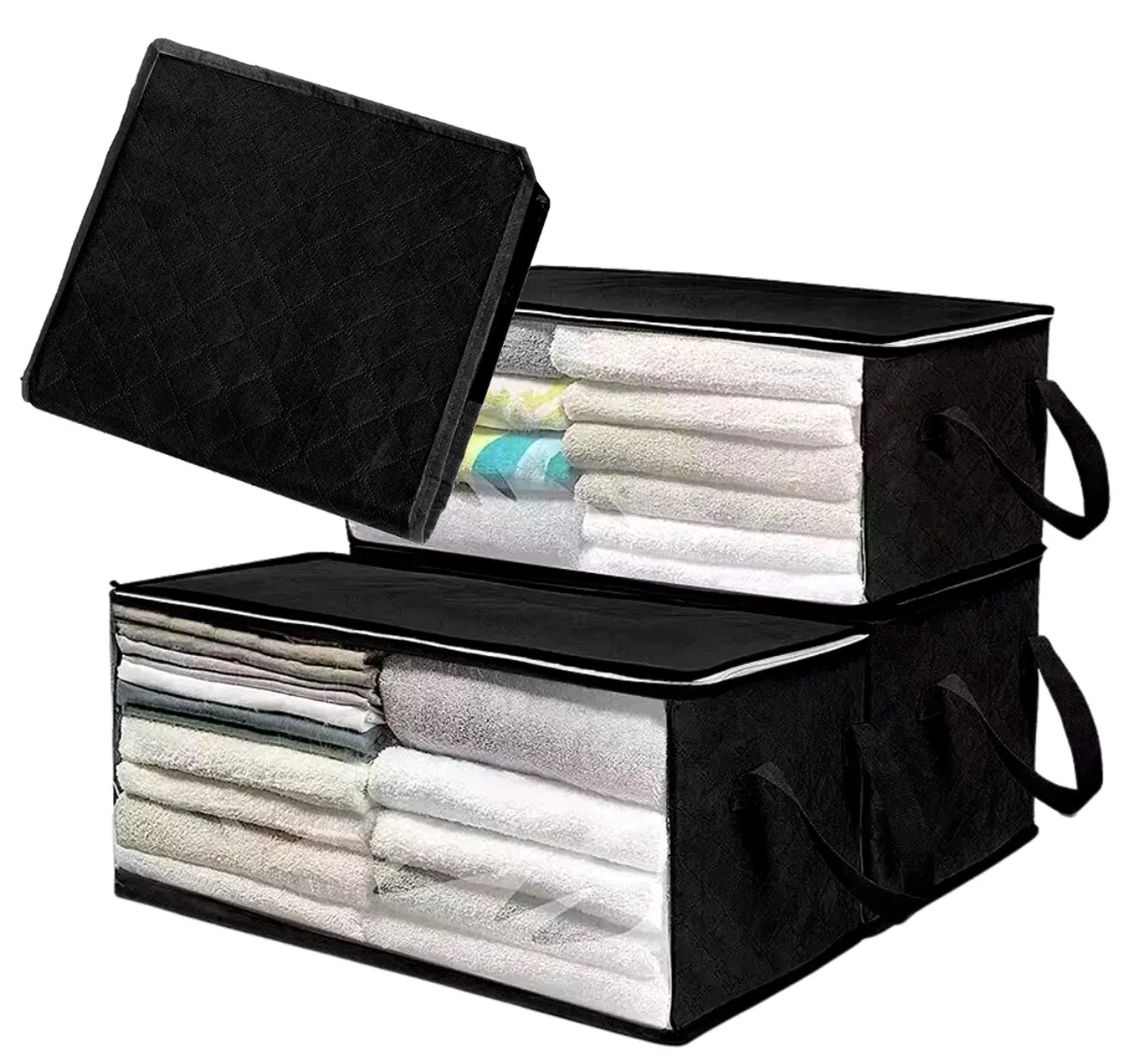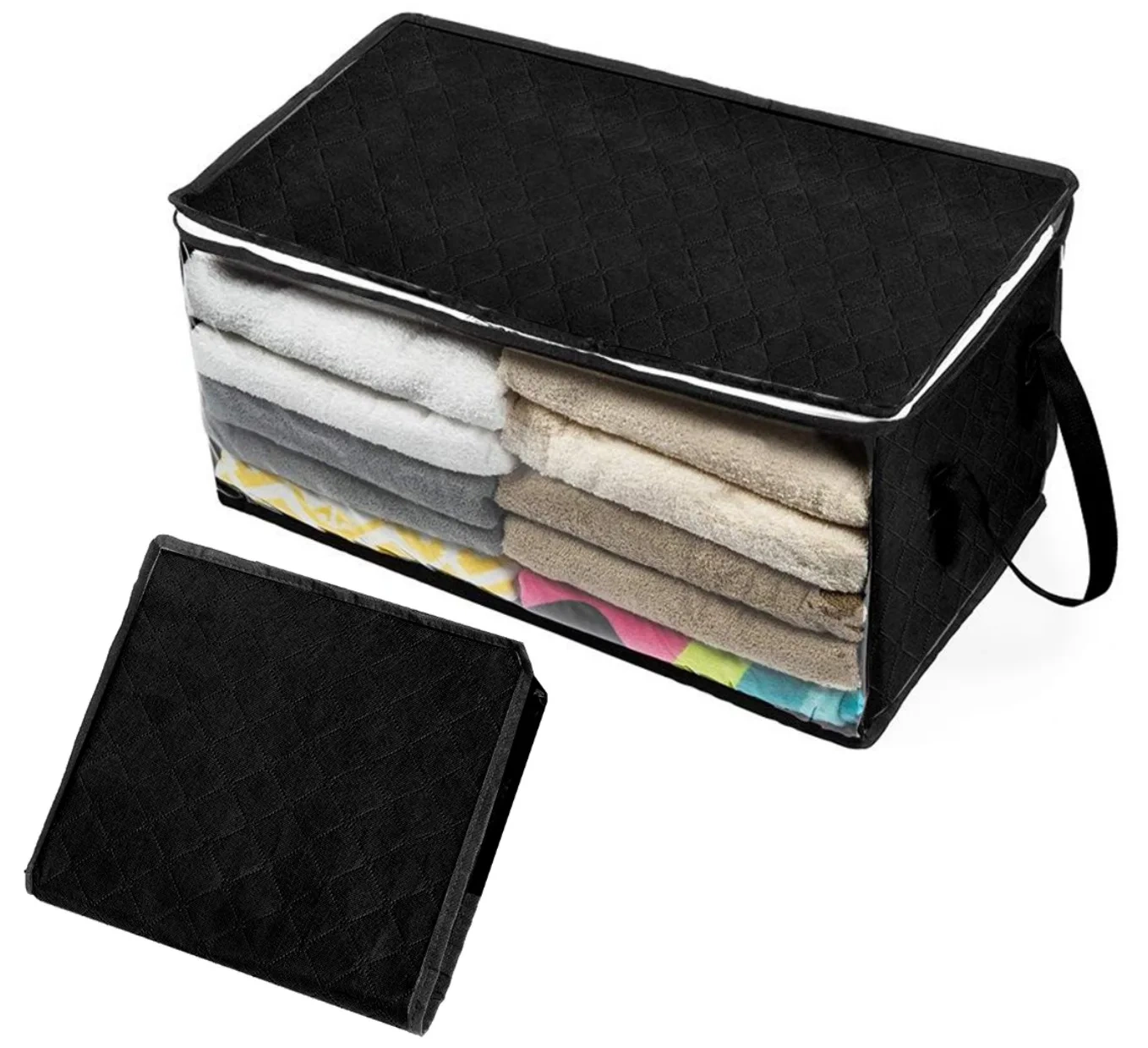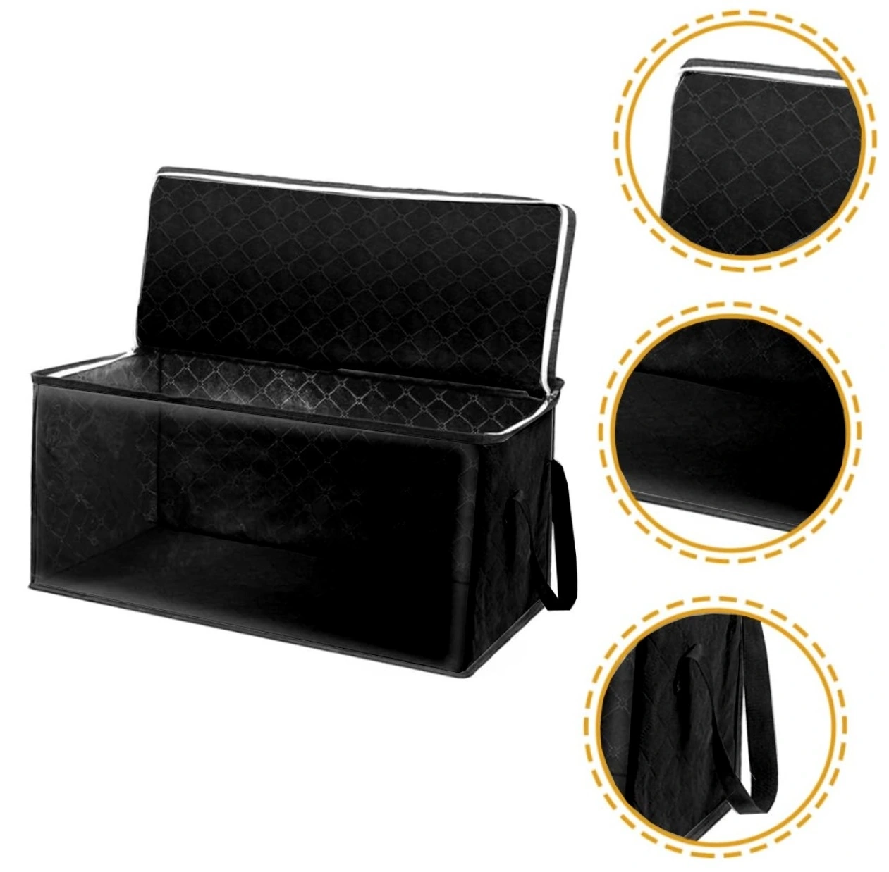 Geanta garderobă recomandată pentru pături haine lenjerie de pat organizator mare este realizată în culoarea neagră.