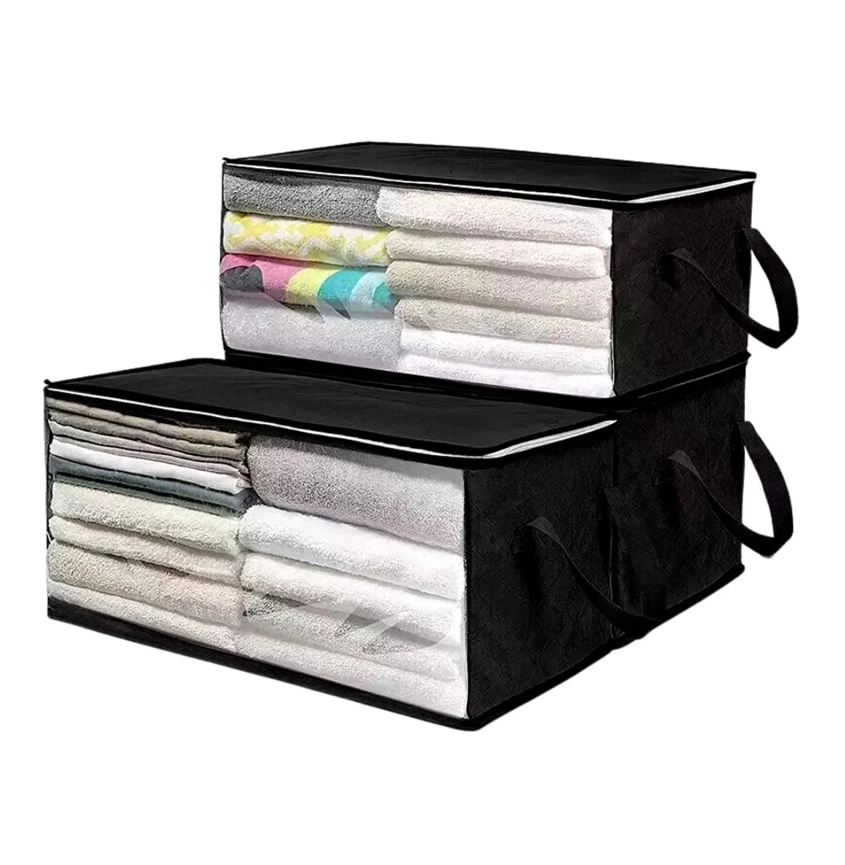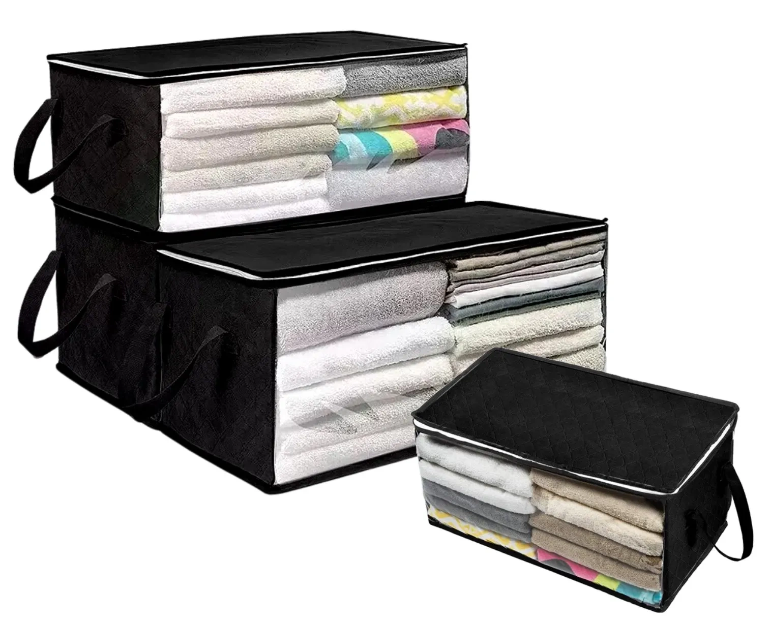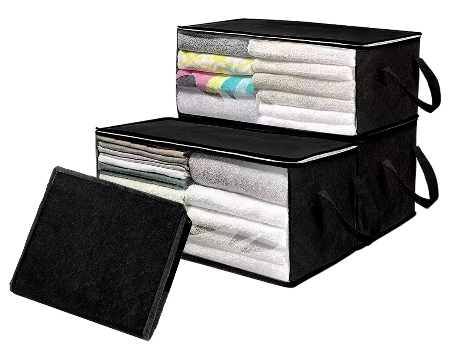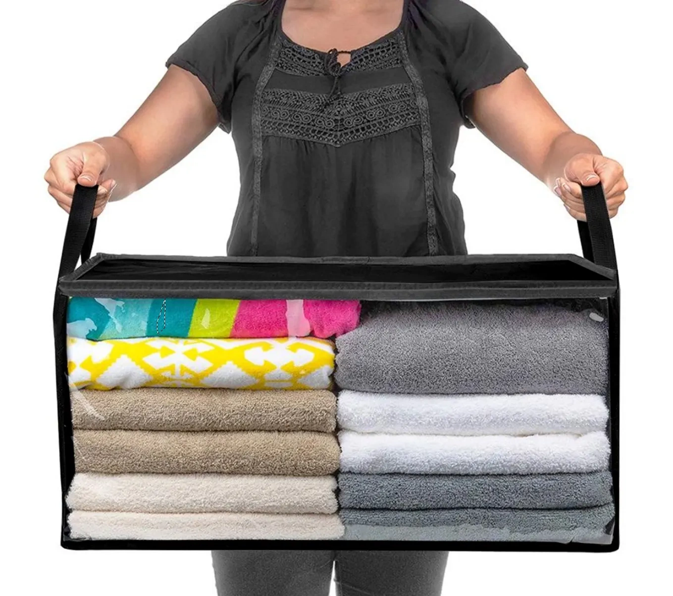 Geanta garderobă recomandată pentru pături haine lenjerie de pat organizator mare este realizată în culoarea neagră.