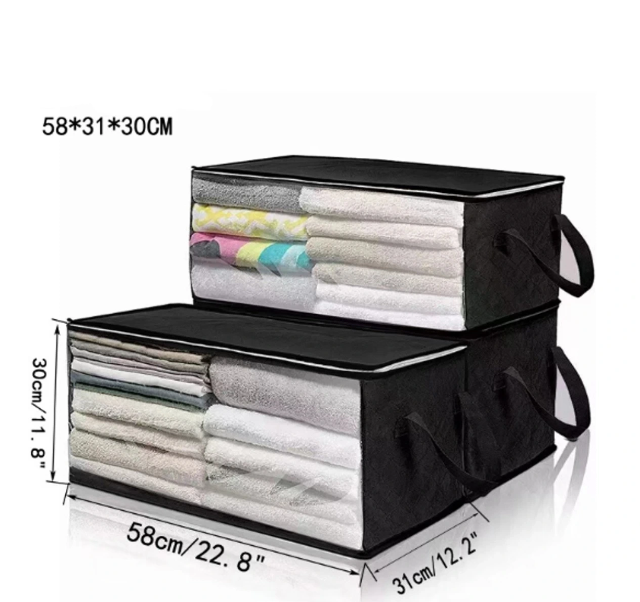 Produsul măsoară 50 cm x 31 cm x 30 cm. Geanta de garderobă pentru pături haine lenjerie organizator robust este ușor de depozitat, pur și simplu pliați-o și depozitați-o în dulap.