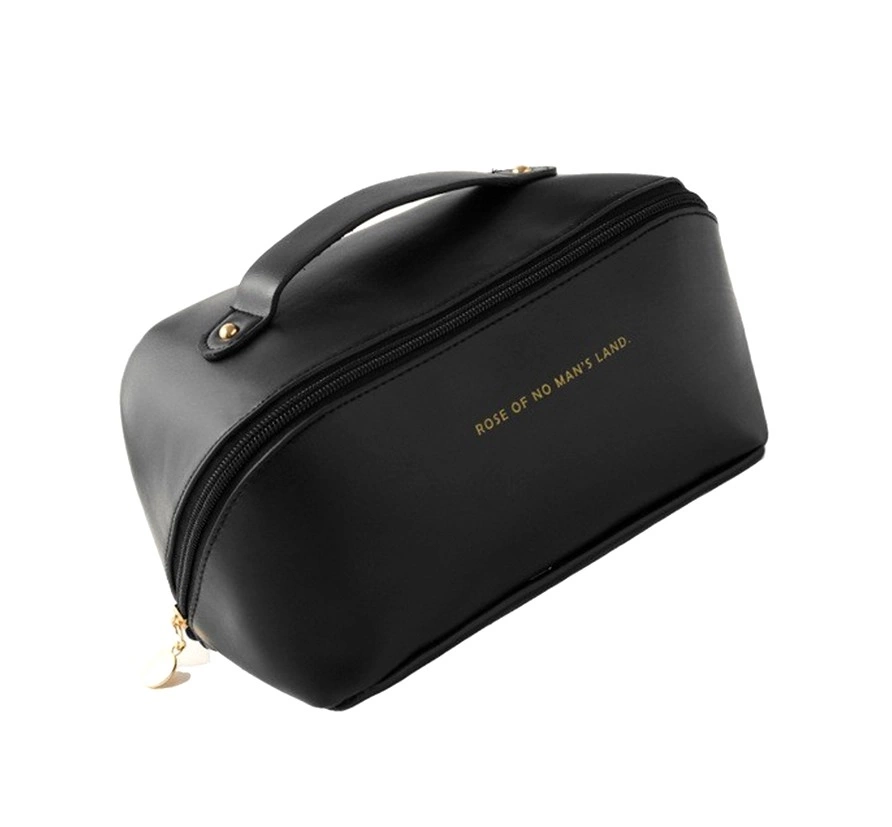 Geanta noastră cosmetică organizator recomandată în piele ecologică neagră este un produs foarte încăpător. Acesta va găzdui cu ușurință ustensile de îngrijire și chiar un aparat de ras electric.