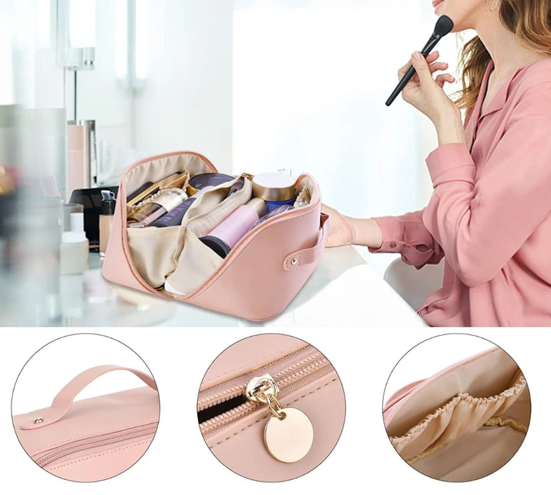 Organizator elegant de genți cosmetice din piele ecologică roz pal - un produs funcțional