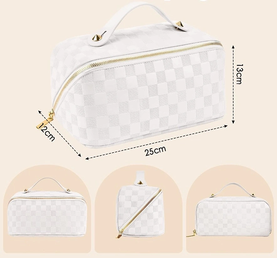 Punga cosmetică organizator luminoasă elegantă din piele ecologică pe care o prezentăm aici poate fi cadoul perfect pentru prietena sau sora dumneavoastră care apreciază ordinea și stilul la modă al accesoriilor folosite.
