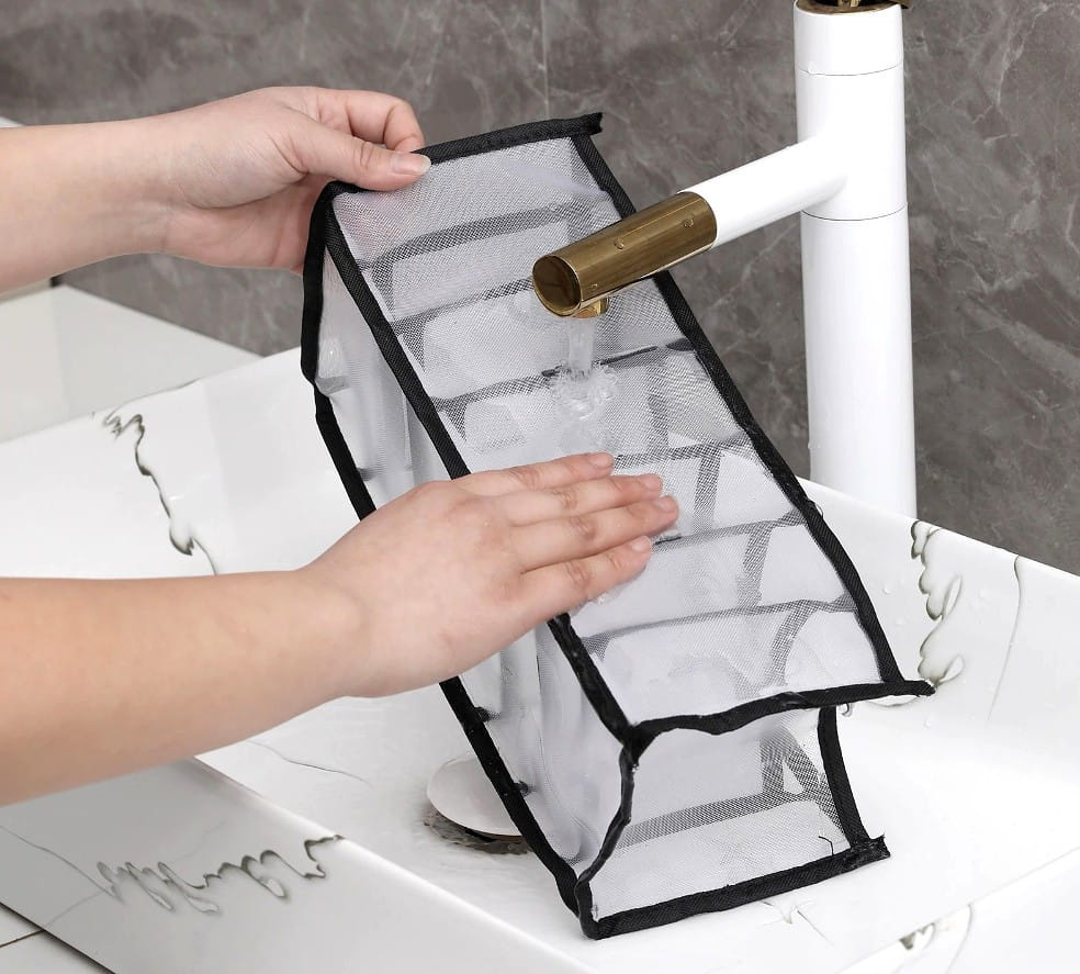 Un produs funcțional precum un separator de sertare pentru dulapuri este foarte ușor de păstrat curat. Pur și simplu clătiți-l sub jet de apă. Materialul este ușor și subțire, astfel încât se usucă rapid și organizatorul poate fi folosit din nou într-un timp scurt.