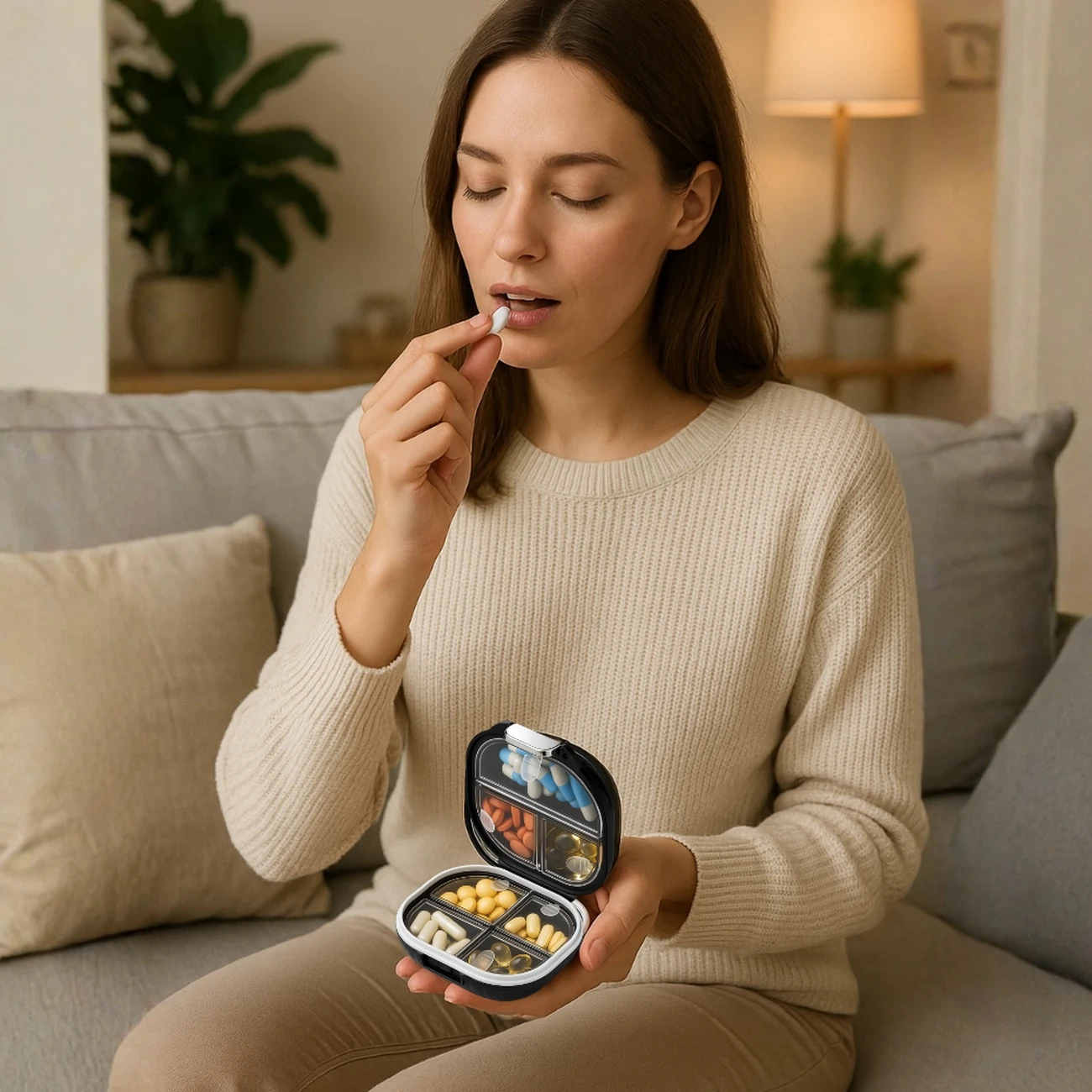 Acesta este un organizator de pastile elegant și fiabil, care combină un aspect modern cu funcționalitatea – perfect pentru cei care apreciază confortul, ordinea și stilul.