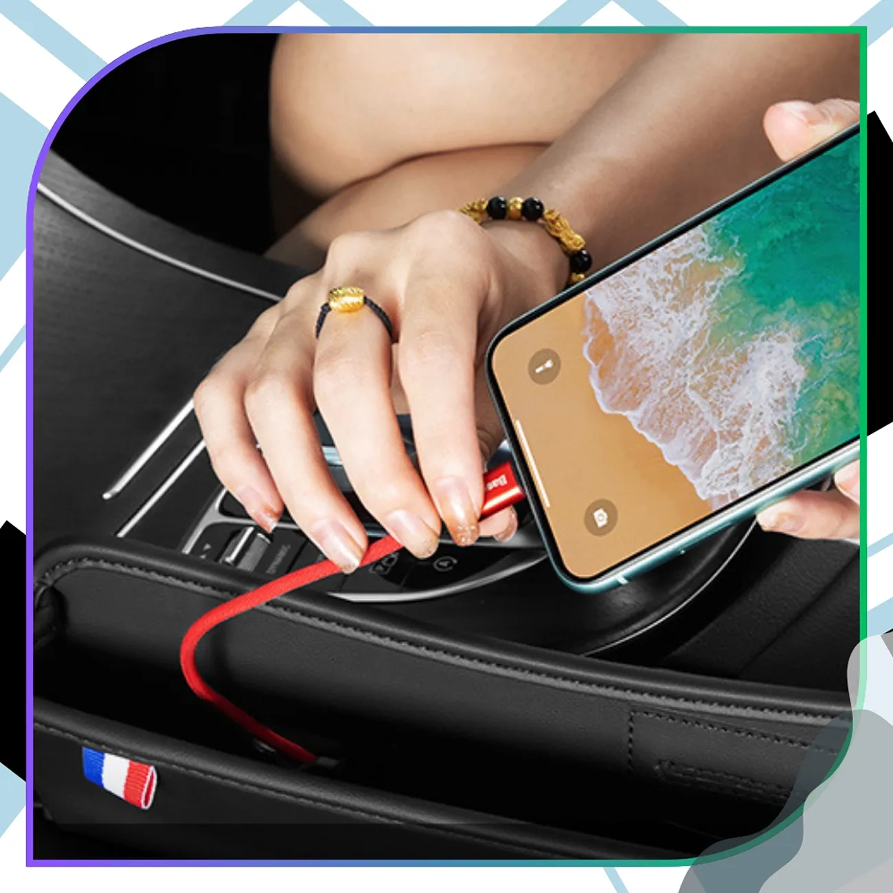 Organizer auto pentru fanta dintre scaune, din piele ecologică, compact.