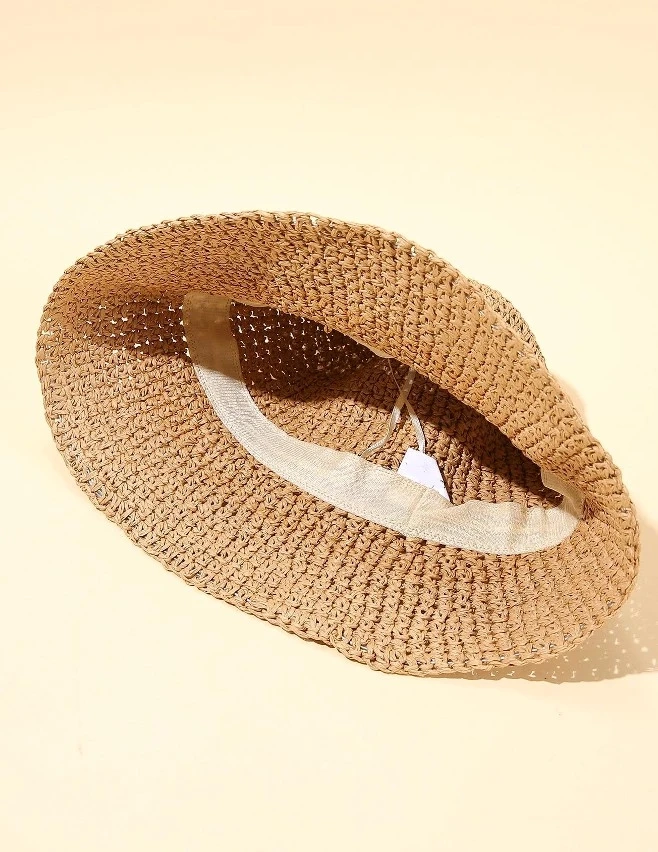 Pălăria de plajă din paie pentru femei oferă o protecție excelentă împotriva soarelui. Construcția traforată asigură o ventilație adecvată a capului în vreme caldă. Produsul este moale, ocupă puțin spațiu, poate fi pliat și nu își va schimba forma. Acest accesoriu fermecător va încăpea în orice valiză.