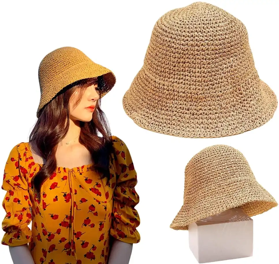 Pălărie de plajă din paie pentru femei FISHER'S BUCKET HAT - un must-have pentru stilul de vară.