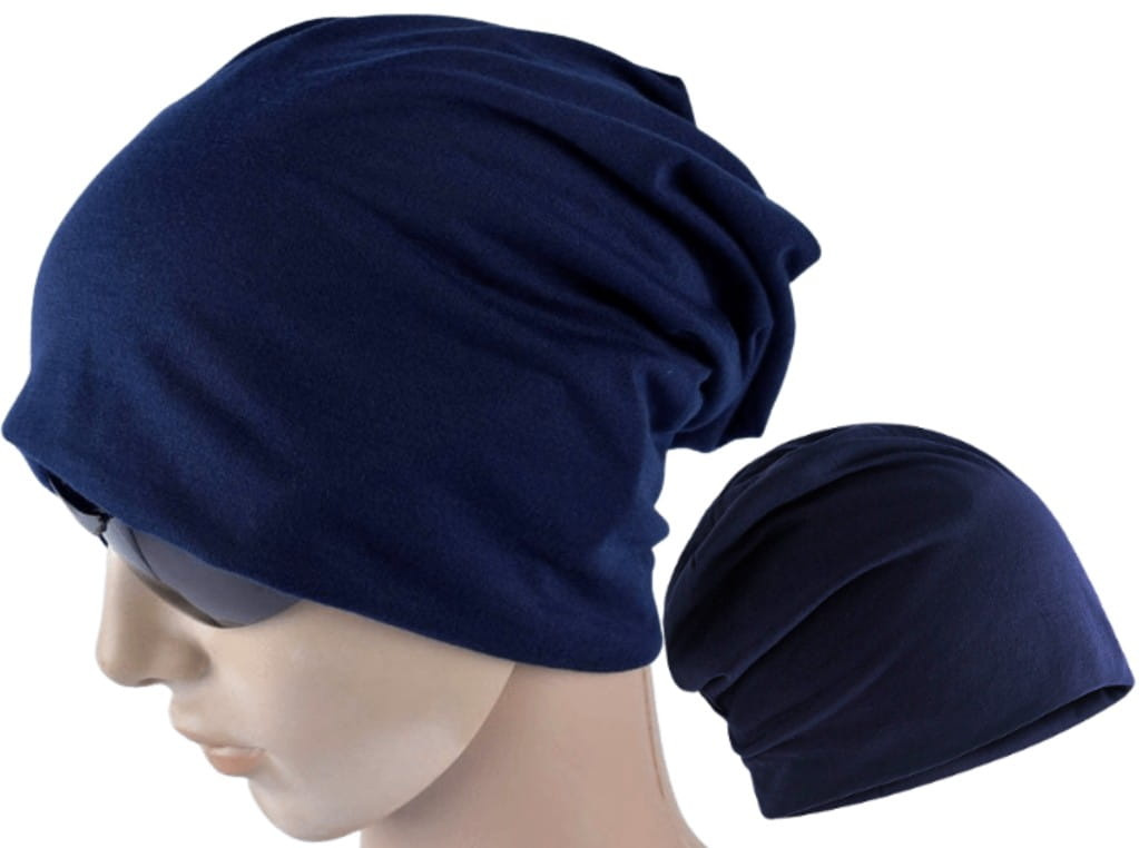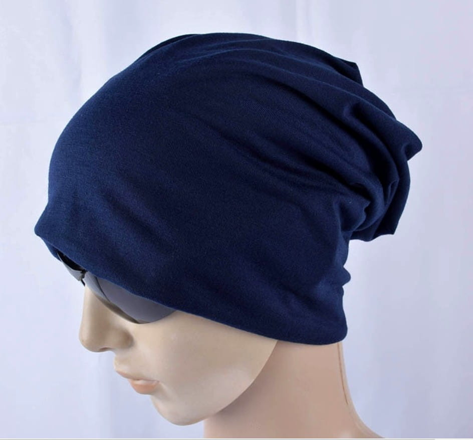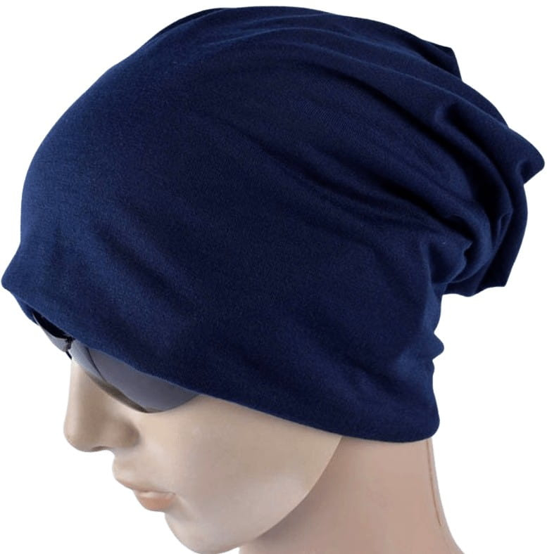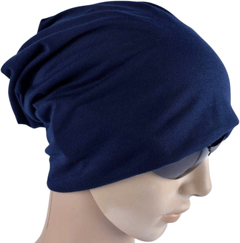 Beanie oversize albastru închis cu elastic dublu este un produs remarcabil și practic.