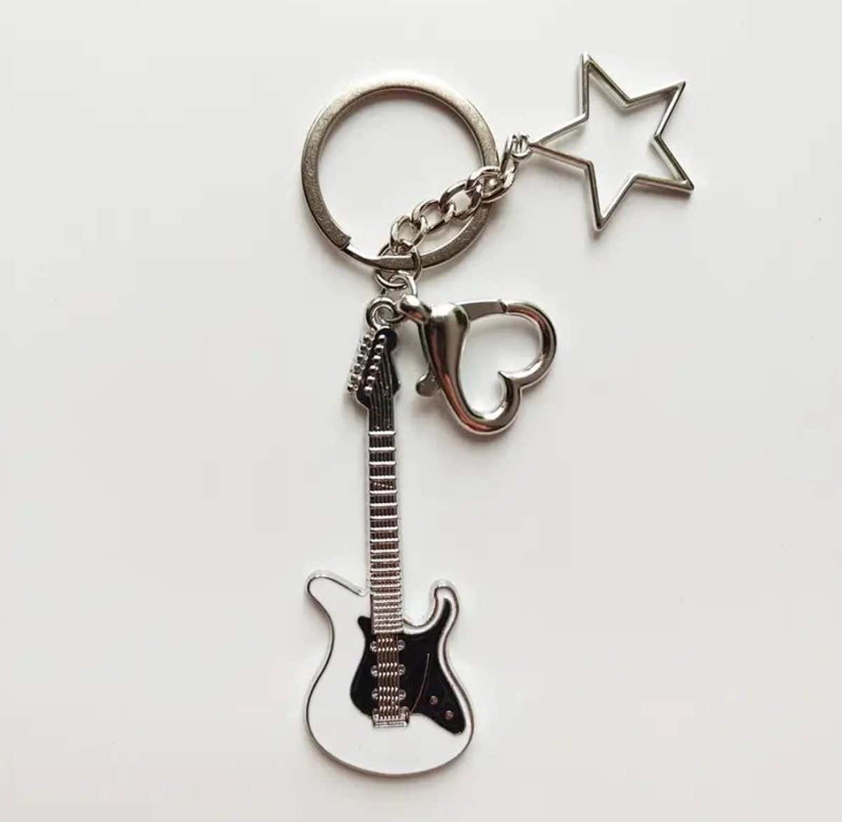 Pandantiv breloc chitara cu stea si inima pentru chei, genti, cadou