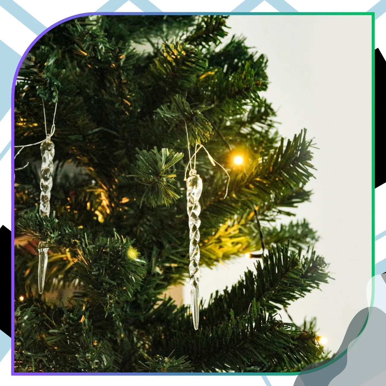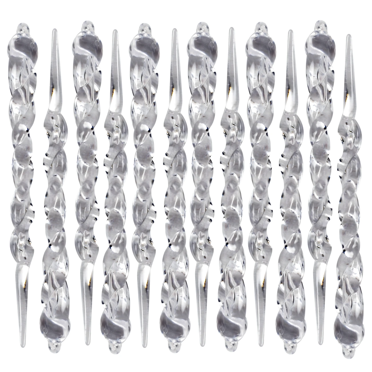 Set de 12 țurțuri de Crăciun din plastic, 13 cm, decorațiuni transparente de Crăciun