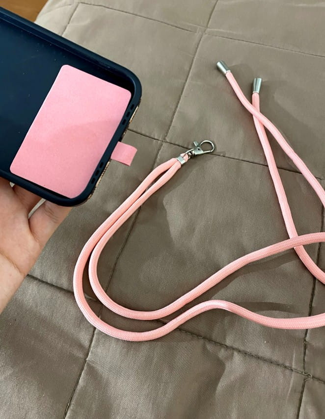 ✅ Se atașează cu un cordon robust pe care îl atașați sub carcasa telefonului dvs.