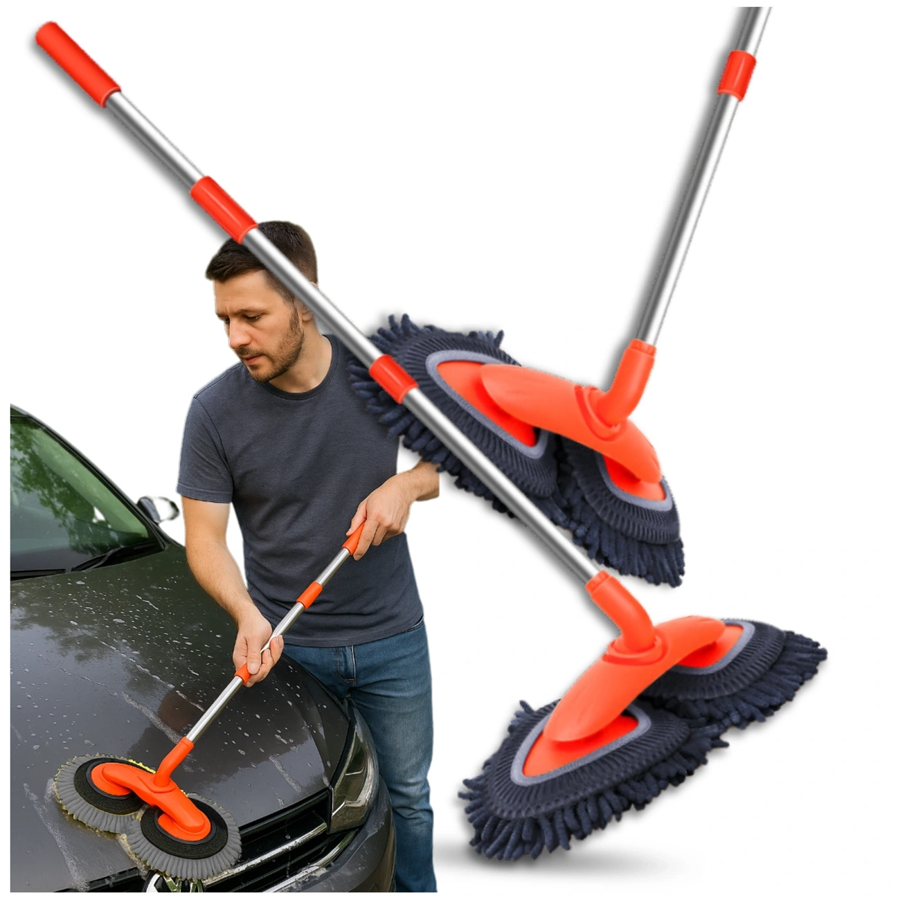 Accesoriul practic pentru orice spălătorie auto este o perie ireproșabilă pentru orice spălătorie. șofer căruia îi pasă de aspectul mașinii sale. Datorită designului său modern și a perilor moi, peria îndepărtează eficient murdăria fără a zgâria vopseaua sau geamurile. Acest produs nou-nouț este gata pentru utilizare imediată în garaj, alee sau spălătorie profesională. Echipat cu un stâlp telescopic reglabil din aluminiu, care se extinde de la 50 la 115 cm, vă permite să ajustați cu ușurință raza de acțiune la nevoile dumneavoastră. Acest lucru vă permite să ajungeți cu ușurință la plafonul, capota, geamurile și zonele greu accesibile ale mașinii. Mânerul ergonomic asigură confort în timpul spălărilor mai lungi, iar designul ușor îl face ușor de manevrat. Capul de 22 x 28 cm este acoperit cu peri densi, moi care absorb apa si agent de curatare, accelerand procesul de curatare. În plus, vârful rotativ vă permite să ajungeți în fiecare colț, făcând curățarea mașinii rapidă și eficientă.