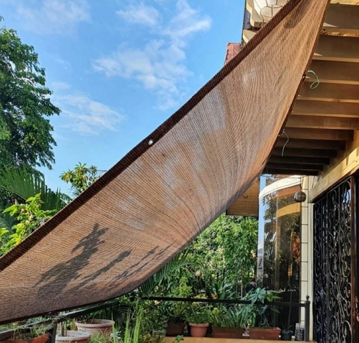 Cele patru colțuri ale plasei de protecție solară sunt întărite cu o margine triunghiulară, iar marginea este întărită cu 6 ochiuri, ceea ce nu este ușor de rupit