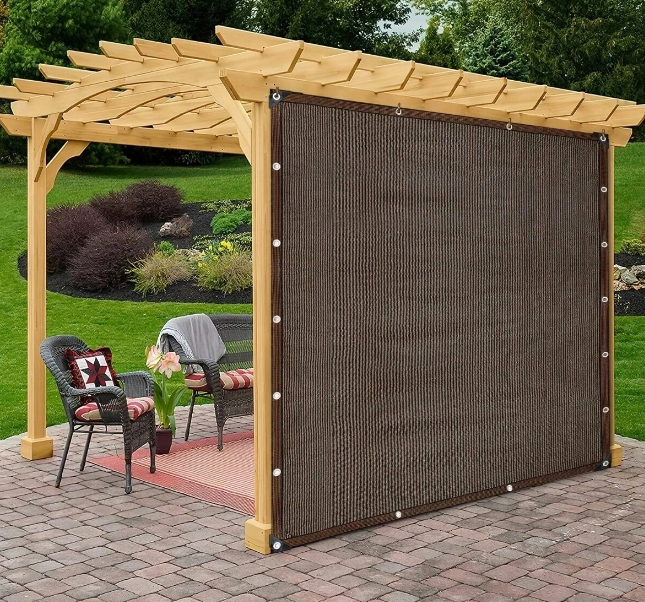 Prelata din plasă este realizată din polietilenă (PE) de înaltă calitate, de înaltă densitate, care garantează durabilitate și rezistență excelente. Acest material este rezistent la razele UV, ceea ce asigură protecție de lungă durată și aspect estetic pentru multe anotimpuri.