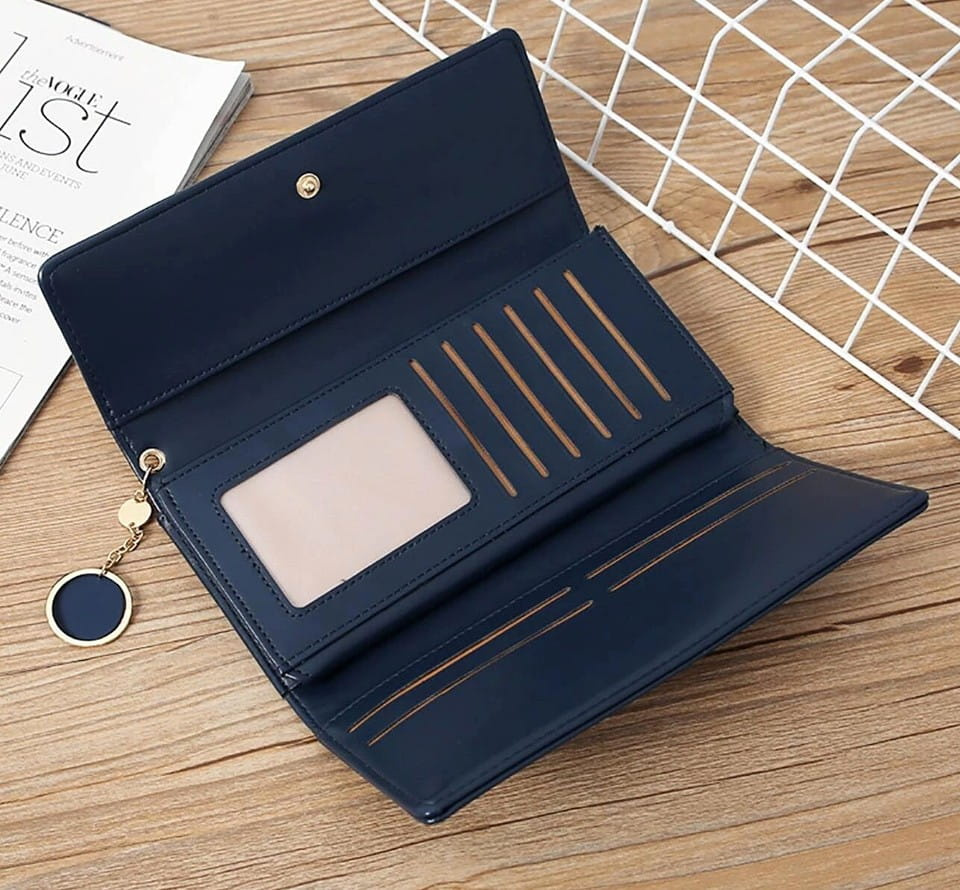 O idee excelentă de cadou pentru o femeie de orice vârstă poate fi portofelul mare pentru femei din piele albastru marin. Acest produs are un buzunar transparent, în care puteți plasa solzi norocoși de crap sau fotografii ale membrilor familiei dumneavoastră.
