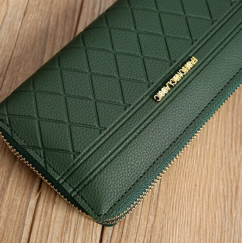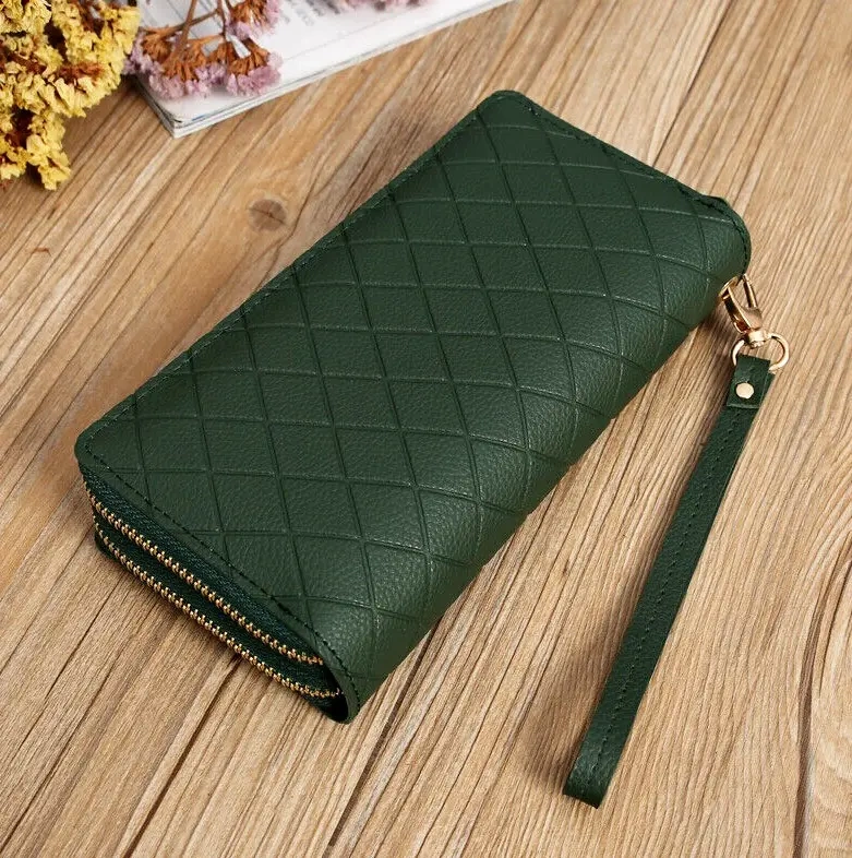 Portofel mare pentru femei Model verde practic, matlasat, decorativ