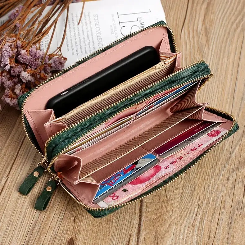 ✅ Portofel de damă convenabil, cu o închidere practică cu două fermoare