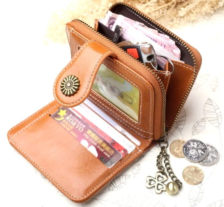 Portofel convenabil pentru doamne, cu închidere rapidă.