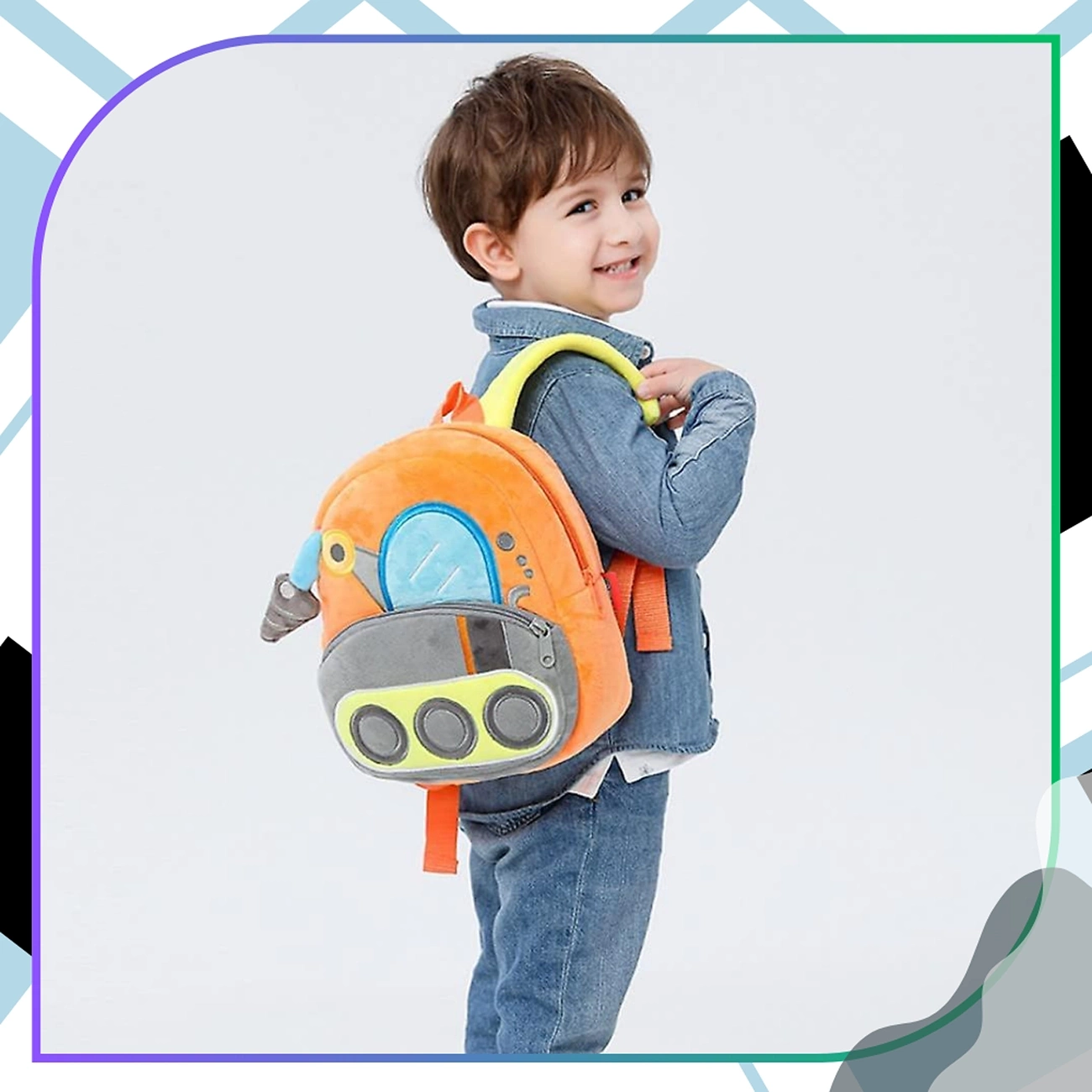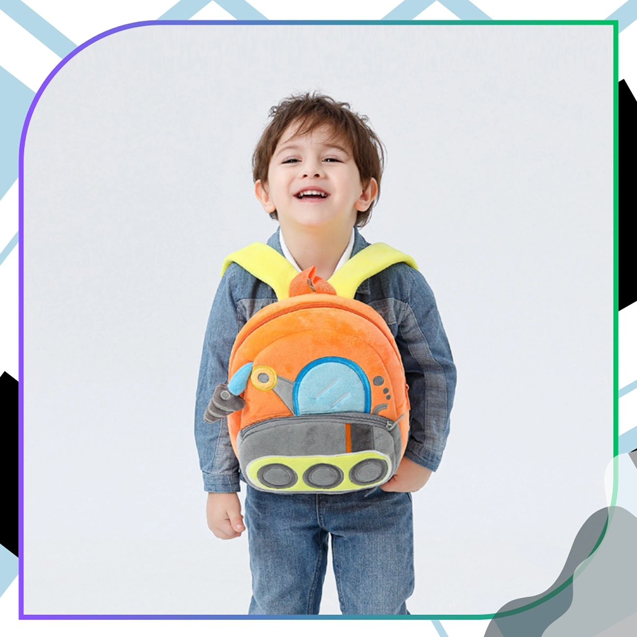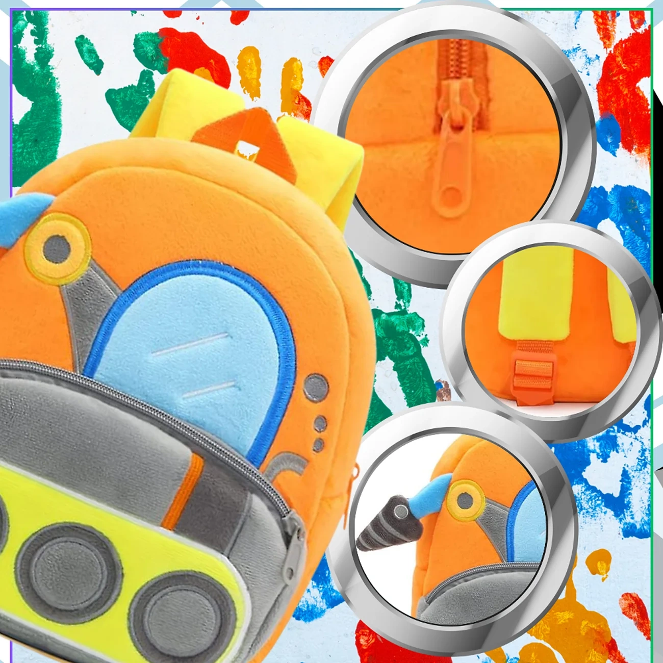 Rucsac de pluș pentru copii, pentru preșcolari, cu fermoar EXCAVATOR