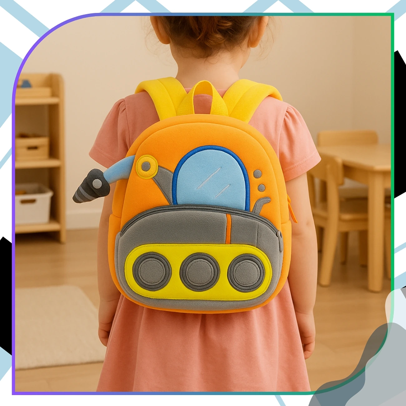 Motivul *excavator* face ca ghiozdanul să atragă atenția și inspiră joaca. Acesta este modelul perfect pentru băieții curioși despre lume, care iubesc tot ce ține de construcții, mașini și aventură.