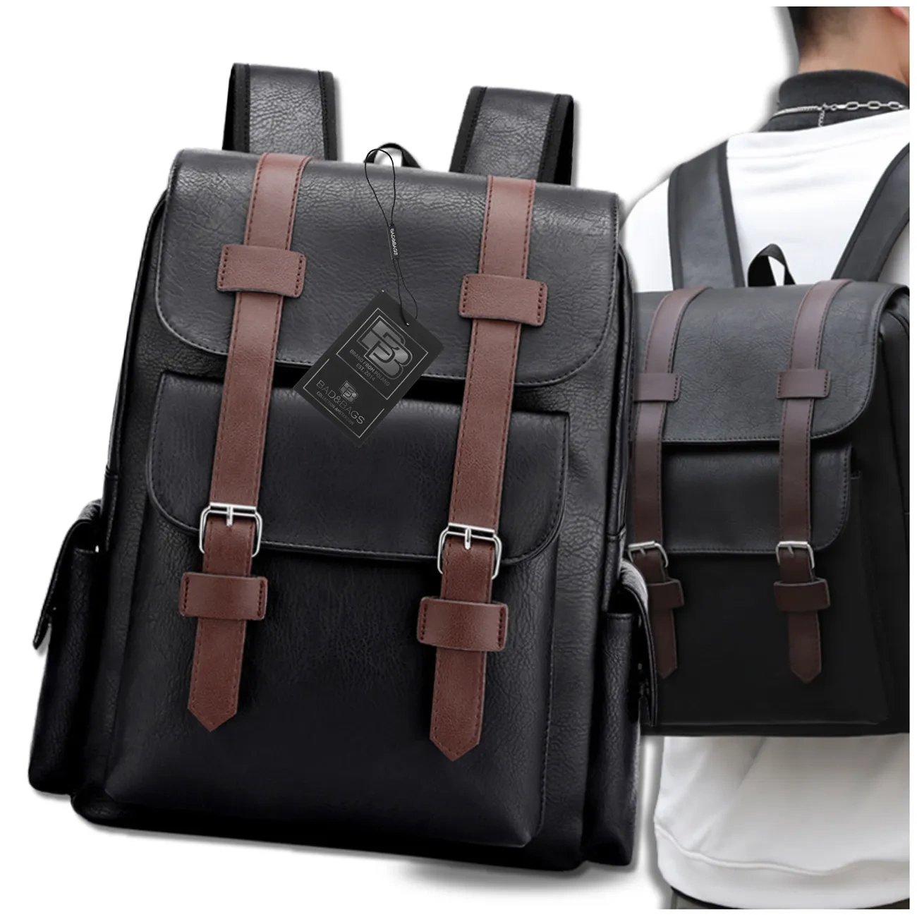 BAD&BAGS – Rucsac bărbătesc din piele ecologică | Rucsac elegant pentru oraș și călătorie | Brand polonez Premium